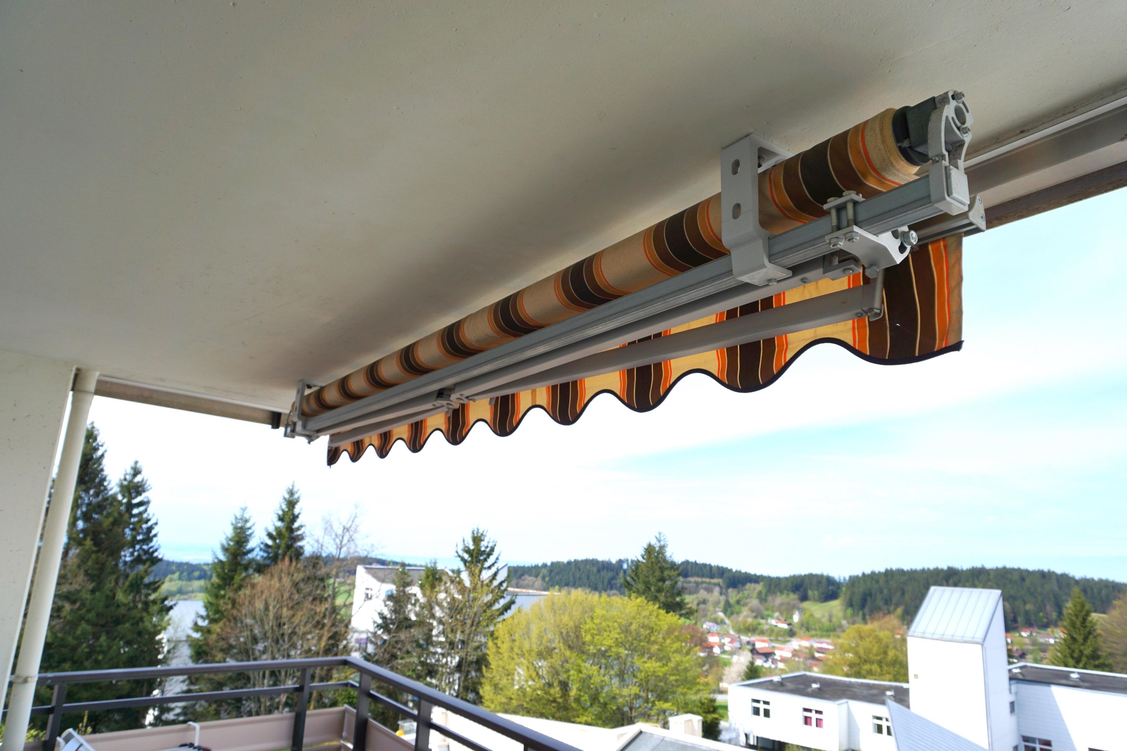 Der großzügigen Balkon in Südausrichtung beherbergt eine urige und hochwertige Biergartengarnitur mit Sitzpolster zum draußen speisen oder entspannt zusammen sitzen bei schöner Fernsicht. Für die Beschattung können Sie eine installierte Markise aus kurbeln. Des Weiteren finden Sie noch Platz für die beiden vorhandenen Sonnenliegen oder den Wäscheständer.