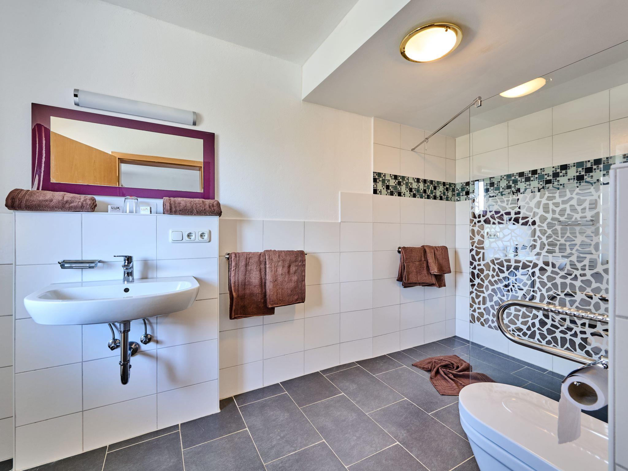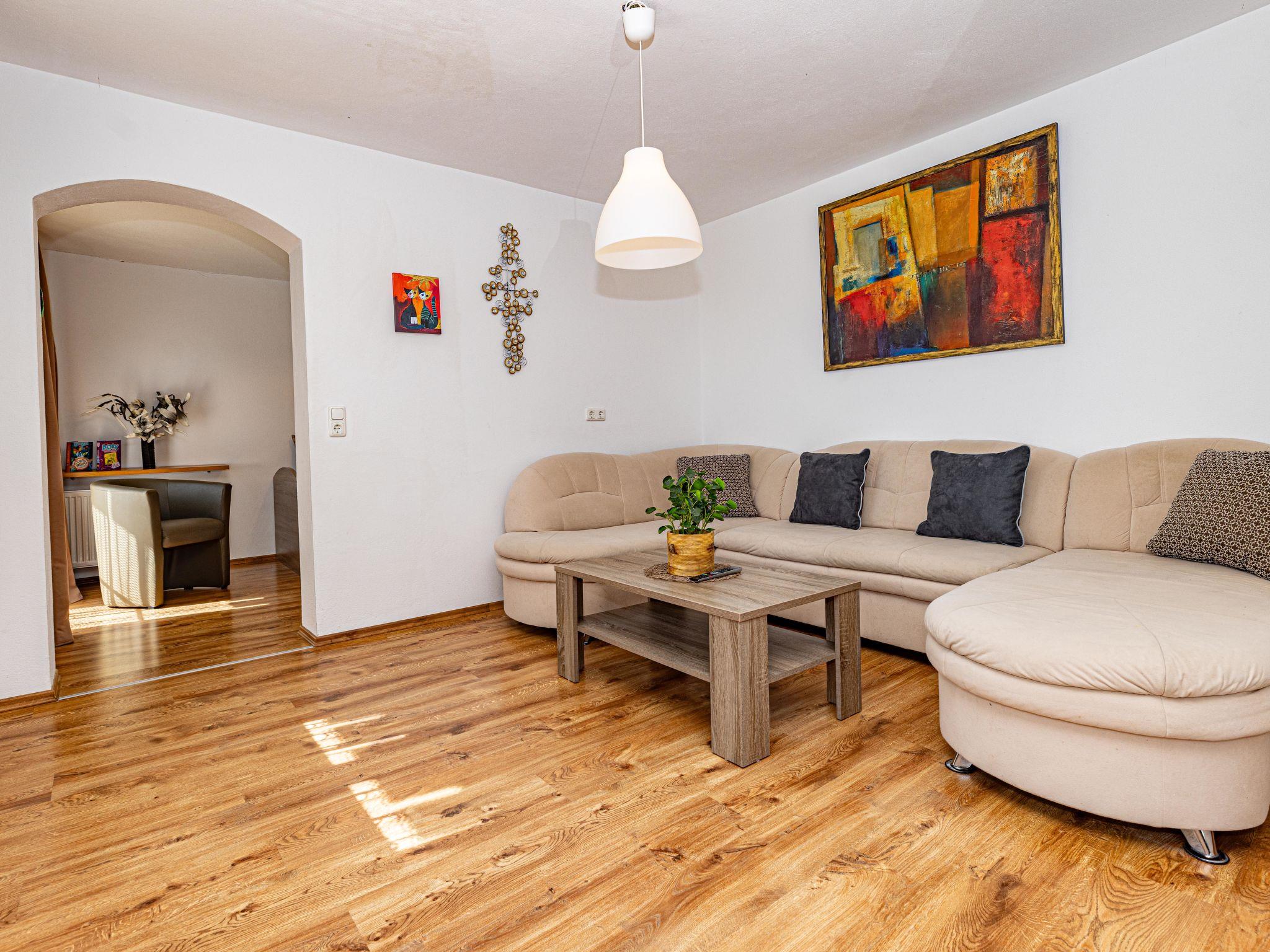 "Mei-Zeit", 8-room house 250 m2 on 2 levels. Modern and tasteful furnishings: large living/dining room with dining table and satellite TV (flat screen). Exit to the terrace. Open playroom. 1 room with 1 sofabed (90 cm, length 200 cm), 1 double bed (200 cm, length 200 cm), shower/WC. Exit to the balcony. Open kitchen (oven, dishwasher, 4 ceramic glass hob hotplates, toaster, kettle, electric coffee machine). Upper floor: 1 room with 1 sofabed (90 cm, length 200 cm), 1 double bed (200 cm, length 200 cm), shower/WC. Exit to the balcony. 1 room with 1 double bed (200 cm, length 200 cm), shower/WC. Exit to the balcony. 1 room with 1 sofabed (90 cm, length 200 cm), 1 double bed (200 cm, length 200 cm), shower/WC. Exit to the balcony. Walk-through room with 1 double bed (200 cm, length 200 cm). 1 room with 1 double bed (200 cm, length 200 cm), shower/WC. Exit to the balcony. Walk-through room with 1 double bed (200 cm, length 200 cm). Heating. Parquet floors. Large terrace partly roofed. Terrace furniture, barbecue, deck chairs. Beautiful view of the mountains and the valley. Facilities: children's high chair, baby cot. Internet (WiFi, free). Parking at the house. Please note: suitable for families. Non-smoking house. Maximum 3 pets/ dogs allowed. Smoke alarm, fire extinguisher.