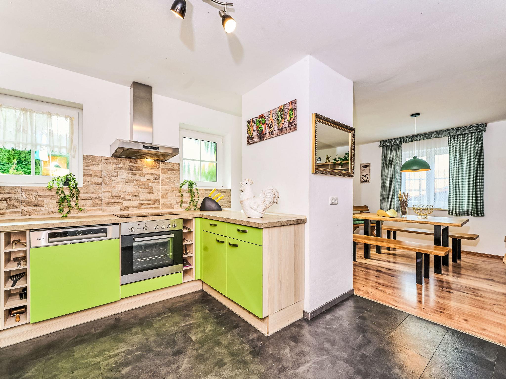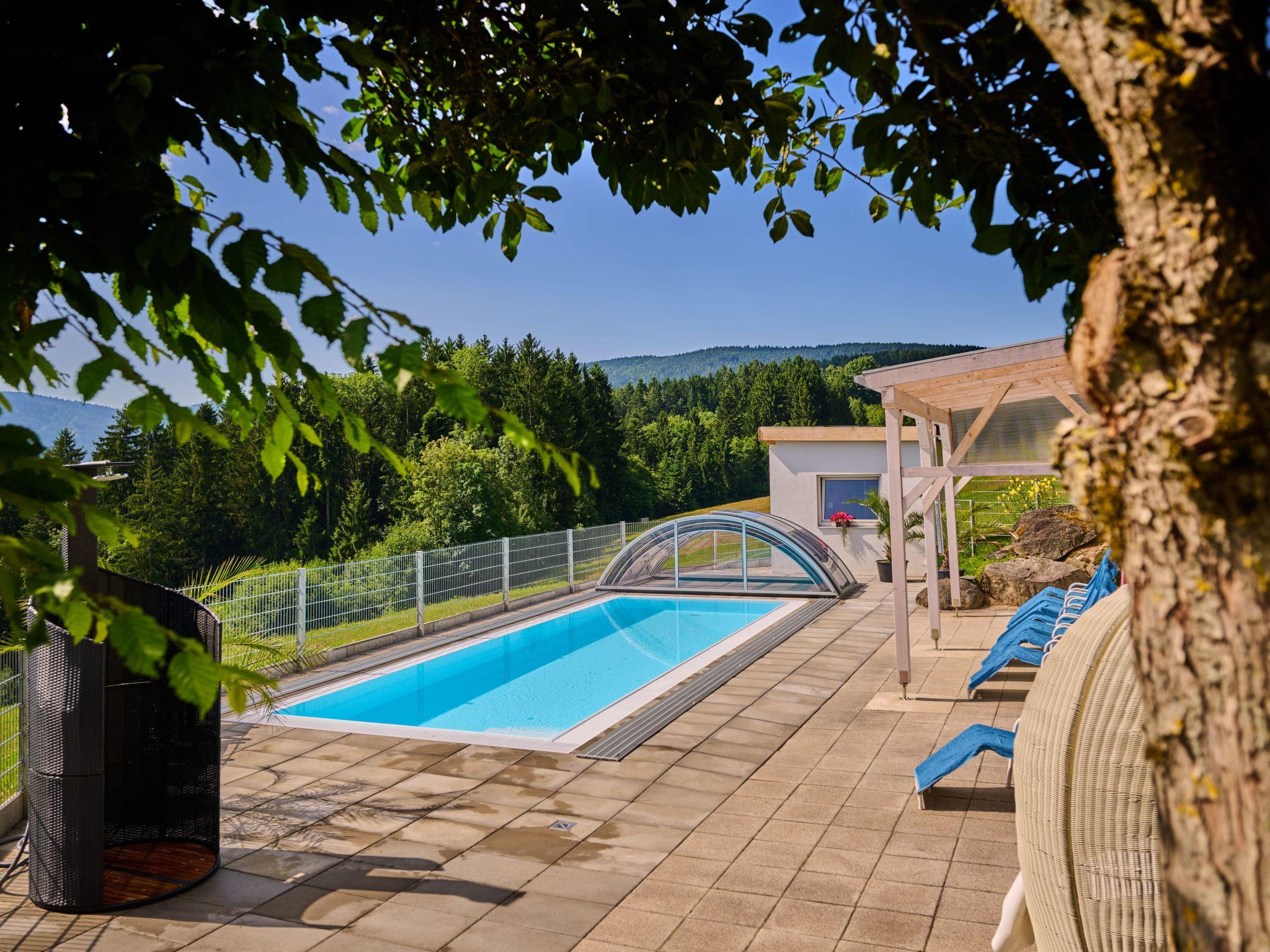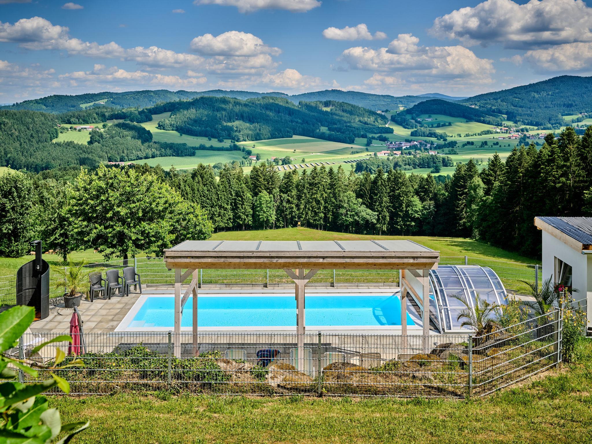 Large, cosy single-family house 700 m a.s.l., 2 storeys. In the district of Baierweg 4 km from the centre of Sankt Englmar, 5 km from the centre of Viechtach, 65 km from the centre of Regensburg, in a sunny, elevated position on a slope, 50 m from the edge of the forest, 4 km from the skiing area, in the countryside. For shared use: swimming pool heated, fenced (10 x 4 m, seasonal availability: 01.Apr. - 01.Nov.). Children's playground (slide, swing). Private: natural state property, meadow. Bread roll service. Parking on the premises. Shop 4 km, supermarket 5 km, bus stop "Baierweg" 400 m, railway station "Viechtach" 7.5 km, indoor swimming pool 50 m. Ski lift 4 km, ski bus stop 250 m. Nearby attractions: Kletterwald 3 km, Rodel- und Freizeitpark St. Englmar 4 km, Waldwipfelpfad 4 km. Well-known ski regions can easily be reached: Sankt Englmar/Predigtstuhl, Bodenmais/Großer Arber. Please note: car recommended. The outdoor pool is located on the grounds of the neighboring hotel approx. 50 m.