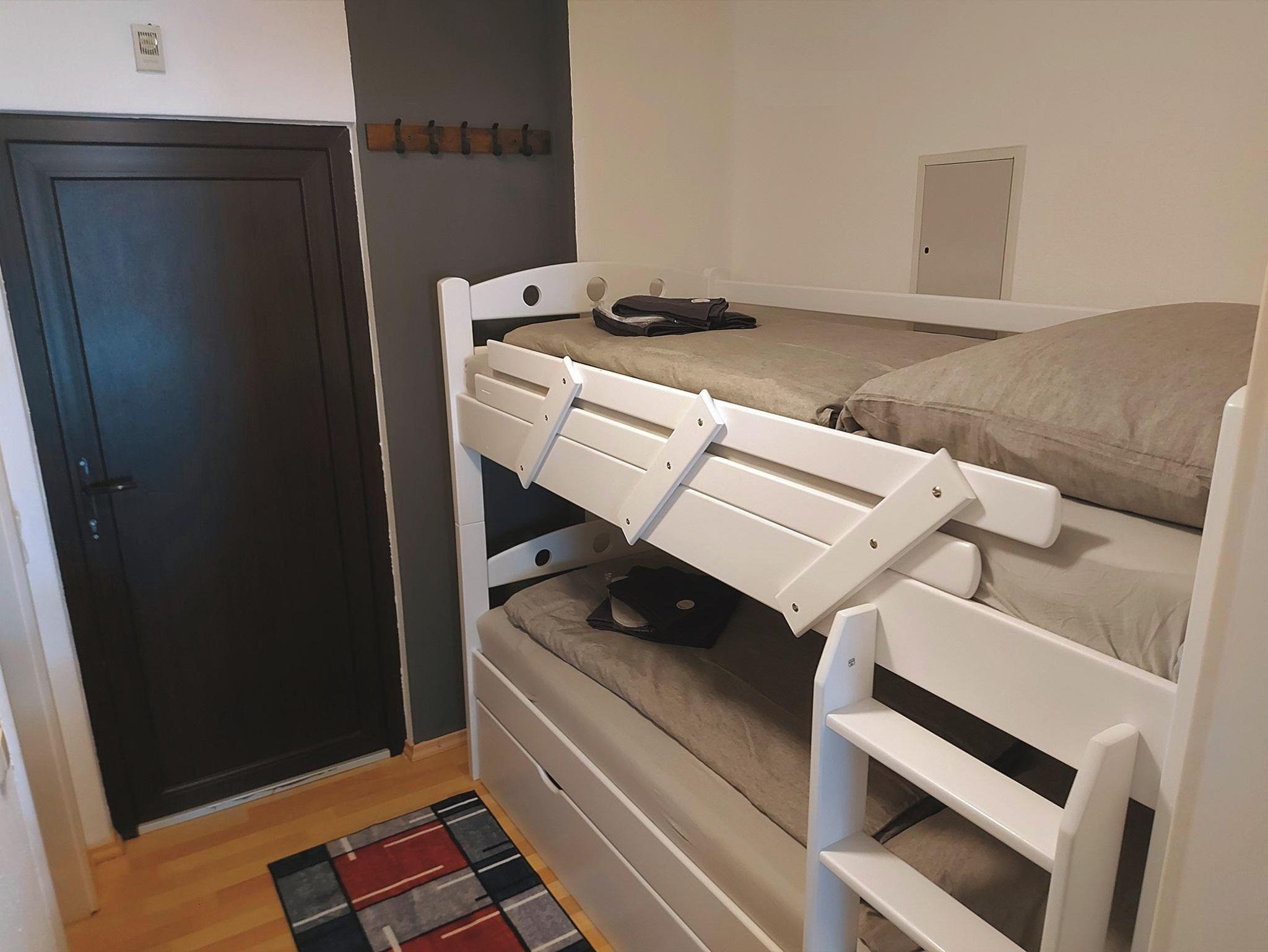praktisches, ausziehbares Etagenbett zur Verfügung, das Platz für bis zu