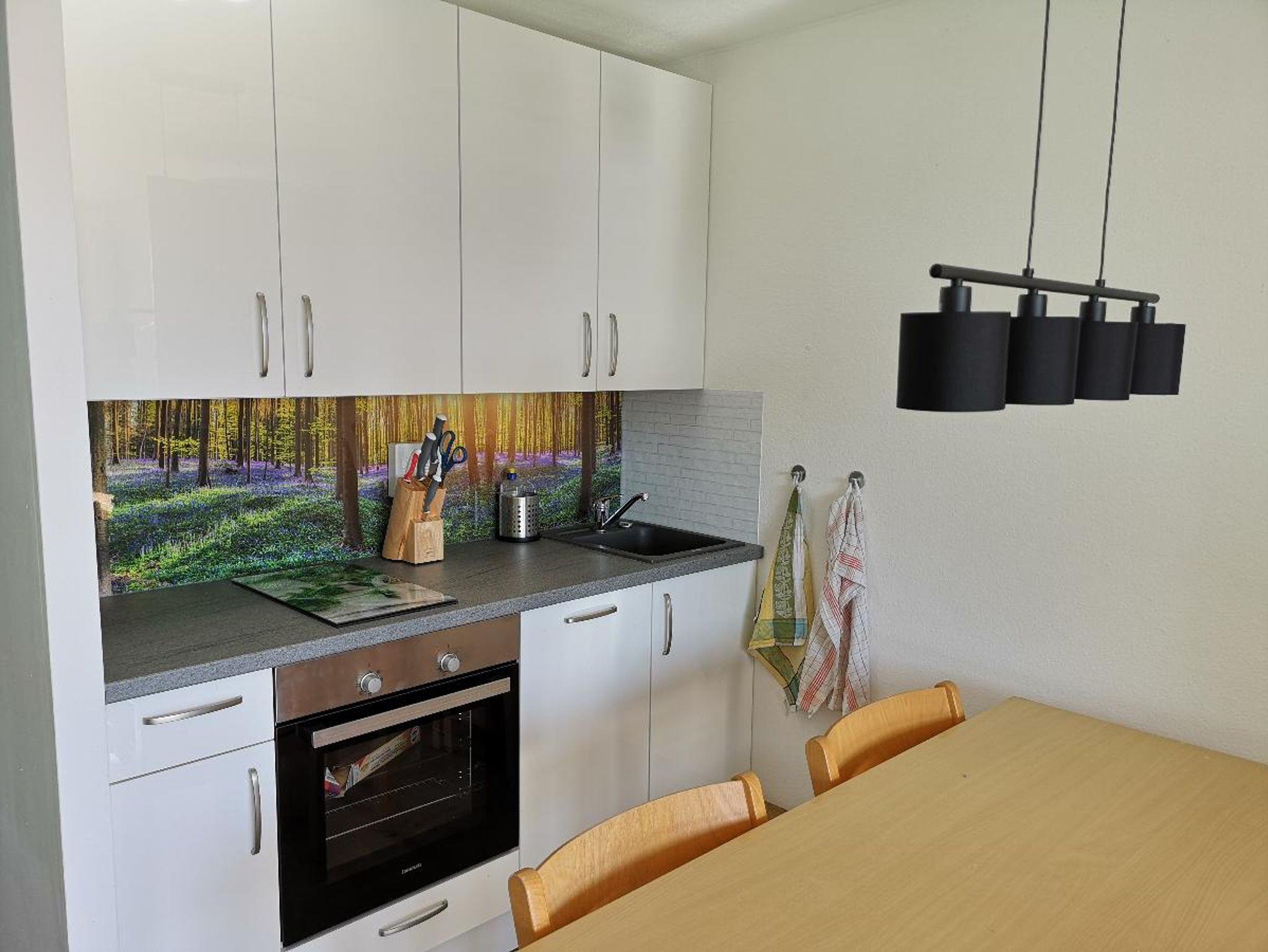 Im Schlafzimmer erwartet Sie eine Schlafcouch für zwei Personen (160 x 200cm) sowie ein Kinderstockbett (90 x 180cm) für bis zu 2 Kinder, ein großer Schreibtisch zum Arbeiten, Lesen, Zeichnen, Malen oder Spielen, ein Kleiderschrank mit ausreichend Stauraum für Ihre Urlaubsutensilien und Nachttische. Der offene Essbereich für 5 Personen ist mit einer hochwertigen Design-Küchenzeile ausgestattet, die unter anderem über ein Ceran-Kochfeld, einen Backofen, eine Mikrowelle, einen Siemens Geschirrspüler, einen Kühlschrank samt Gefrierfach, eine Senseo-Kaffeemaschine und einen Wasserkocher verfügt. Im großzügigen Wohnraum lädt ein hochwertiges Boxspring-Schlafsofa (nutzbar als vollwertiges Doppelbett) zu entspannten Abenden ein. Außerdem stehen Ihnen ein Smart-TV mit Kabelfernsehen, Internetzugang und verschiedene Spiele-Apps sowie eine Stereoanlage mit Radio, CD-Player und Bluetooth zur freien Verfügung. Unterhaltung bietet Ihnen auch die große Auswahl an Büchern, DVDs und Spielen. Vom Wohnzimmer aus gelangen Sie zum sonnigen Süd-Balkon mit Liegestühlen und Lounge Sesseln – perfekte Voraussetzungen für ein entspanntes Frühstück oder den Ausklang eines gelungenen Urlaubstages.
