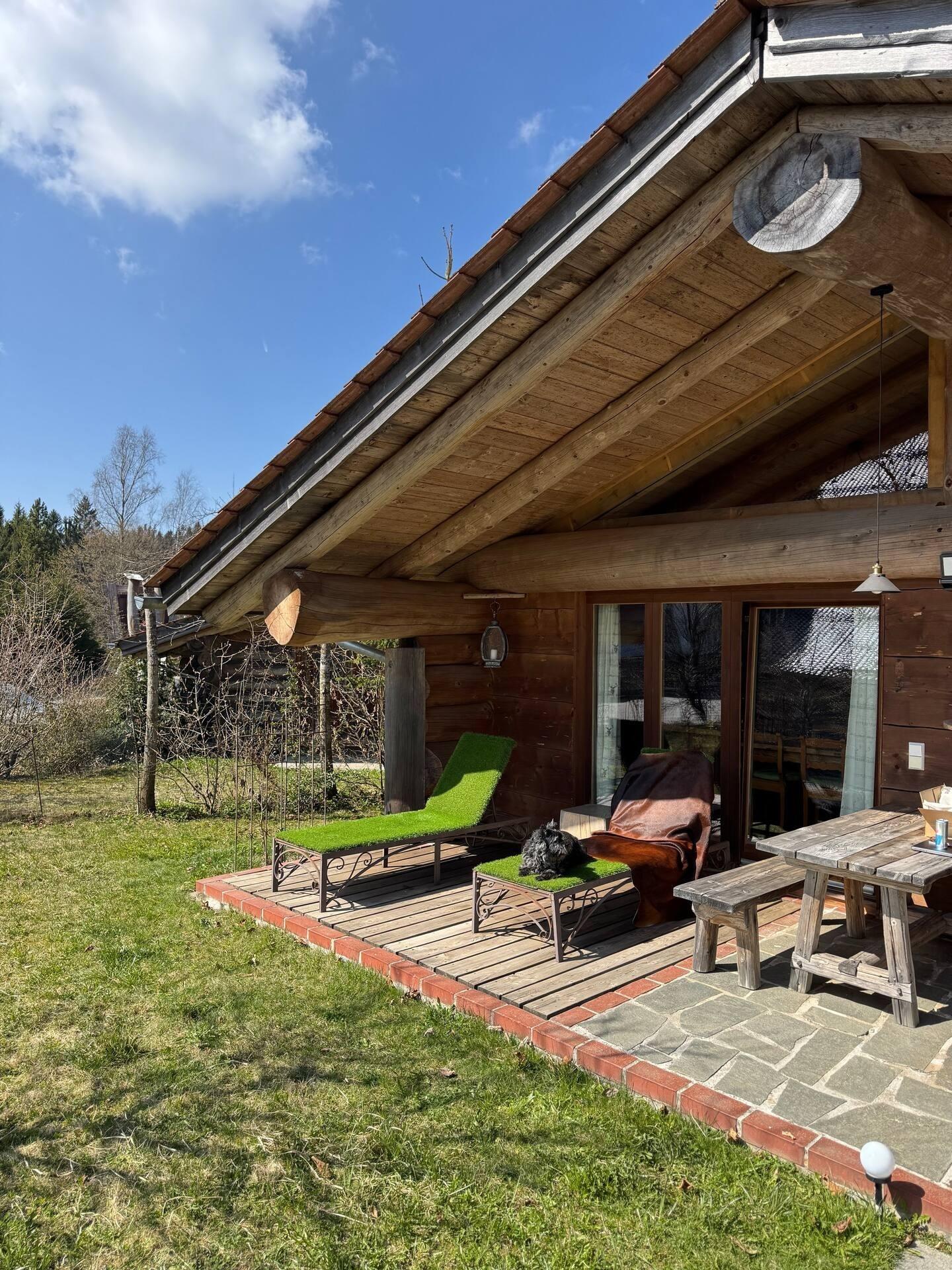 Das Blockhaus ist komplett ausgestattet und versprüht durch die behagliche Einrichtung im alpinen Stil urige Gemütlichkeit, Komfort und Wohlfühlatmosphäre. Das Blockhaus verfügt über 2 Schlafzimmer sowie einem großen Wohn-/Essbereich mit offener Küche. Auf der großzügigen Terrasse und im eigenen Gartenanteil lässt es sich wunderbar erholen und die Sonne und Naturkulisse genießen.