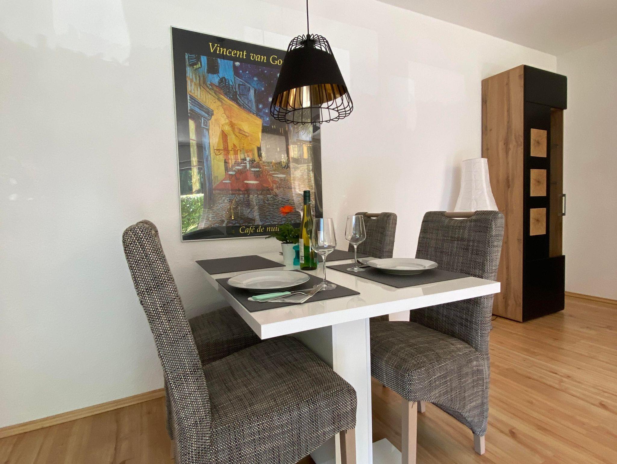 Die Wohnung hat ca. 70 qm Wohnfläche und wurde 2023 komplett renoviert. Sie verfügt über eine Terrasse und einen Stellplatz. Neben einem großen Wohn-/Essbereich finden Sie ein Schlafzimmer, Badezimmer mit Dusche/WC und eine Küche. Die Küche ist mit einer Kühl-/Gefrierkombination, einem Backofen, einem Geschirrspüler und allem, was Sie zum täglichen Kochen benötigen, ausgestattet. Im Schlafzimmer befindet sich ein Kingsize-Boxspringbett, das Ihnen erholsame Nächte garantiert. Sie finden auch einen Kleiderschrank mit Aufhängemöglichkeiten und zusätzlichen Regalen. Im Wohnzimmer können Sie sich auf dem großen, gemütlichen Ecksofa, das auch zu einem Schlafsofa umgewandelt werden kann, ausruhen und einen schönen Abend vor dem 65-Zoll Smart-TV verbringen. Wenn Sie noch etwas zu arbeiten haben, so steht Ihnen ein extra Schreibtisch und natürlich kostenloses schnelles Internet zur Verfügung. Oder doch lieber den Abend im Freien genießen? Kein Problem, auf unserer großen Terrasse, die Sie direkt über das Wohnzimmer erreichen, können Sie die lauen Sommerabende gemütlich genießen. Restaurants, kleiner Supermarkt und Tankstelle befinden sich in unmittelbarer Nähe. Wasch- und Trocknungsmöglichkeiten sind vorhanden.