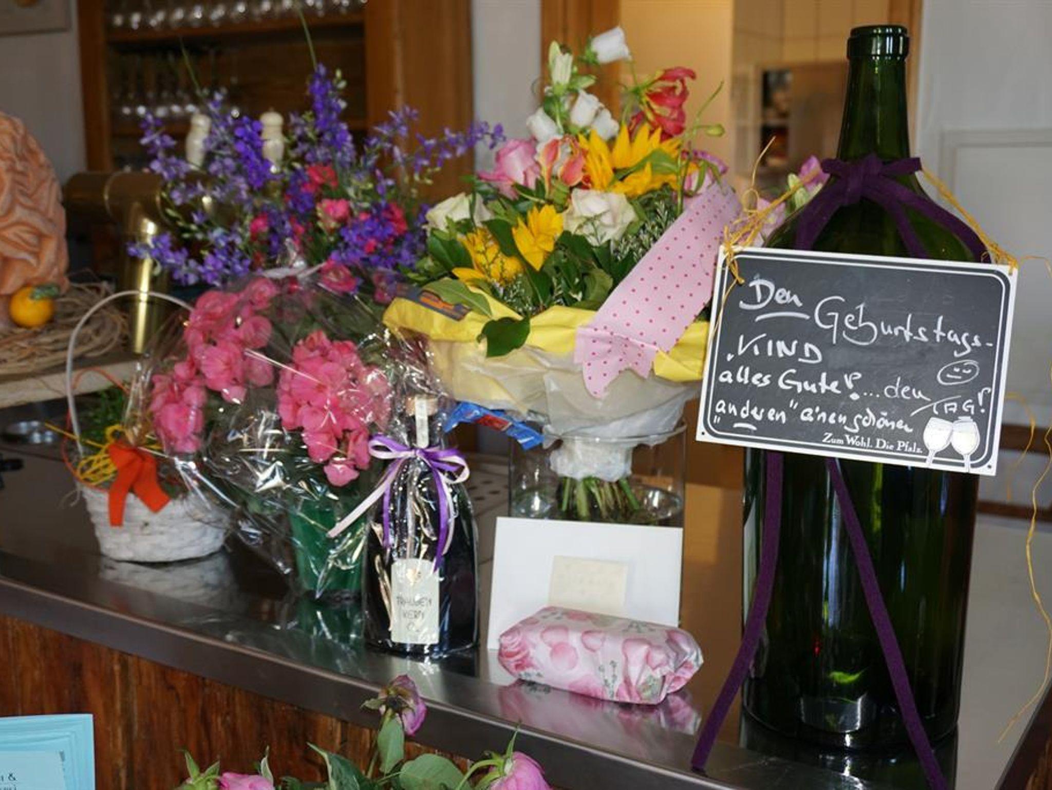 In unserem Aufenthaltsraum verfügen wir über Getränkekühlschränke. Sie haben damit die Gelegenheit unsere gepflegten Weine, Brände, Sekt und Secco, die alle aus eigenen Erzeugnissen stammen, zu genießen. Hier befindet sich außerdem auch ein Gemeinschaftsbalkon. Zur Weinprobe steht das kleine Weinprobierstübchen täglich – nach Absprache, innerhalb der Öffnungszeiten - zur Verfügung. Kostenloses Parken ist direkt am Haus auf unserem Parkplatz möglich. Für Fahrräder (auch E-Bikes) haben wir eine Unterstellmöglichkeit in unserer mit Code abschließbaren Fahrradgarage, natürlich auch kostenfrei. Auch im Außenbereich verfügen wir über Sitzgelegenheiten; unter unseren Pavillons auch überdacht.