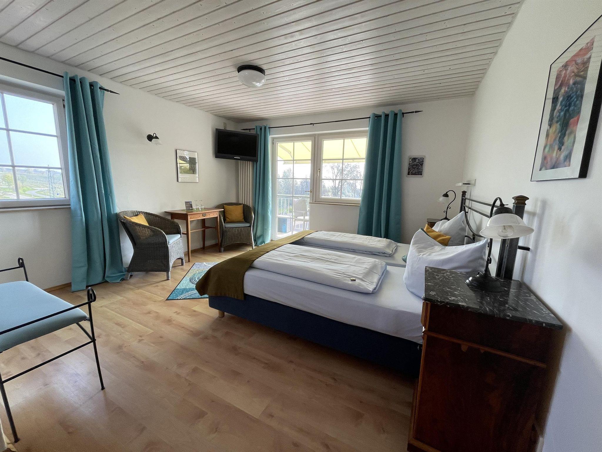 Egal, ob im Goldmorgen, beim Baron oder auf dem Kirchberg, unsere Zimmer sind mit schönen Antiquitäten eingerichtet und verfügen je über Dusche/WC, Badezimmerhocker, Föhn und Vergrößerungsspiegel, Kofferablage, Safe, Flachbildschirm-SAT-TV mit integriertem Radio sowie einer kleinen Sitzecke und teilweise möbliertem Balkon. Unsere Boxspringbetten sind alle am Fußende offen, teilweise auch am Kopfteil höhenverstellbar. Alle Zimmer verfügen über Verdunklungsvorhänge oder Rolläden und haben einen Blick zum Hambacher Schloss oder in die Rheinebene. Mit unserer digitalen Gästemappe können Sie schon von zu Hause Ihren Urlaub beim Winzer planen, digital einchecken und Ihr Frühstück vorbestellen.