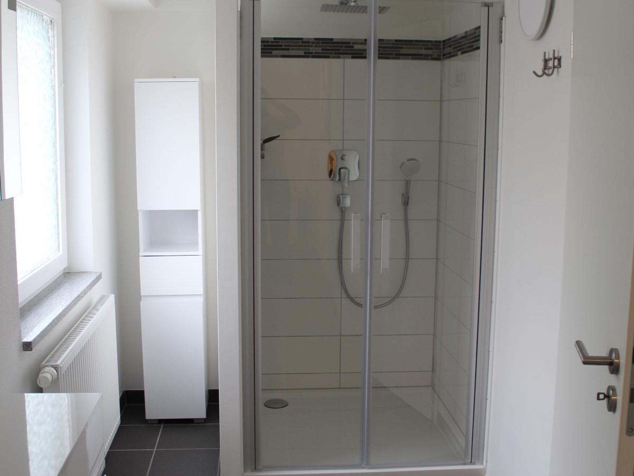 Zudem erwartet Sie ein großes, helles Badezimmer mit Dusche, eine Terrasse mit gemütlicher Sitzecke sowie für die kleinen Gäste ein Spielgarten mit Kletterturm, Schaukel und großem Trampolin.