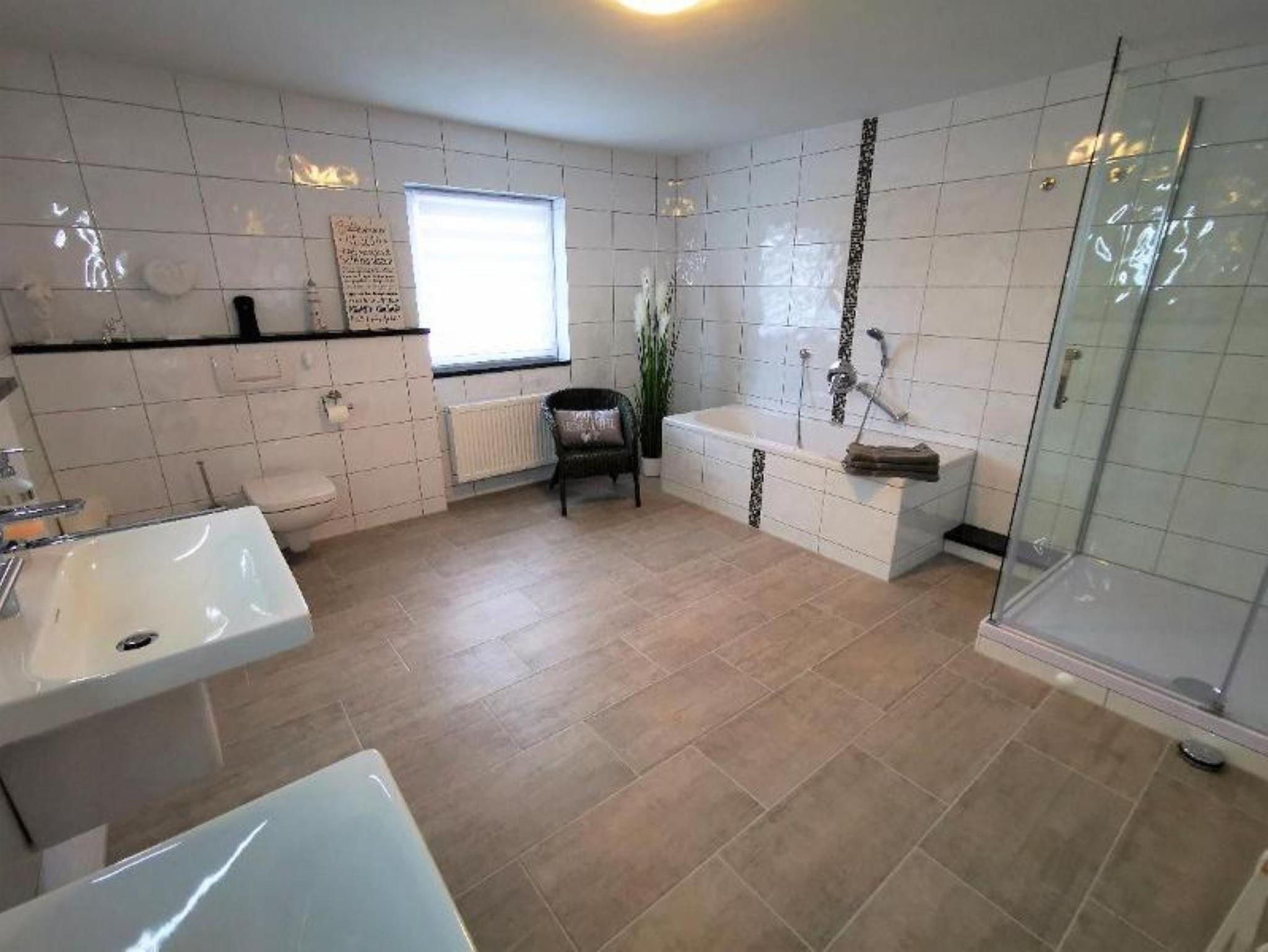 Unsere Ferienwohnung mit 100 m² Wohnfläche im 1. Stock bietet Platz für 2-4 Personen. Das gemütliche Wohnzimmer mit Schlafsofa und Flachbild-TV lädt zum Verweilen ein. Die komplett ausgestattete Küche mit Geschirrspüler, Kühlschrank incl. Gefrierfach, Herd, Backofen, Mikrowelle, Wasserkocher, Toaster und Kaffeemaschine lässt keine Wünsche offen. Die Ferienwohnung verfügt über zwei Schlafzimmer mit je einem Doppelbett. Das geräumige Badezimmer mit Wellnessdusche (niedrige Duschwanne), Badewanne, Föhn, Handtuchtrockner und WC rundet das Gesamtbild ab. Zusätzlich steht Ihnen noch ein separates WC zur Verfügung. Vor allem im Sommer können Sie entspannte Grillabende in unserem Garten verbringen. Haustiere sind erlaubt (max. 2 kleine Hunde, Hunde über 35 cm Schulterhöhe sind auf 1 Tier beschränkt). Das WLAN und den Parkplatz vor dem Haus können Sie kostenfrei nutzen.