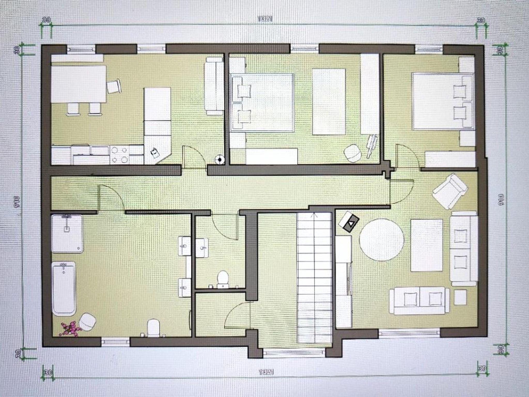 Unsere Ferienwohnung mit 100 m² Wohnfläche in der ersten Etage bietet Platz für bis zu vier Personen.