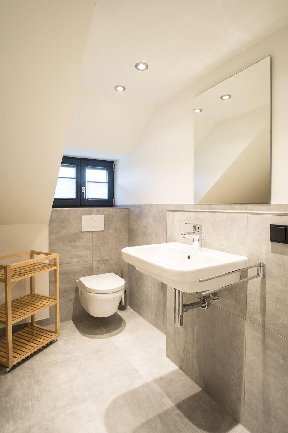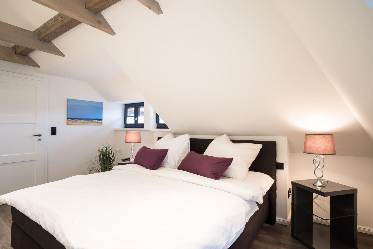 Über eine Holztreppe gelangt man in das Obergeschoss mit zwei großzügigen und liebevoll eingerichteten Schlafzimmern.