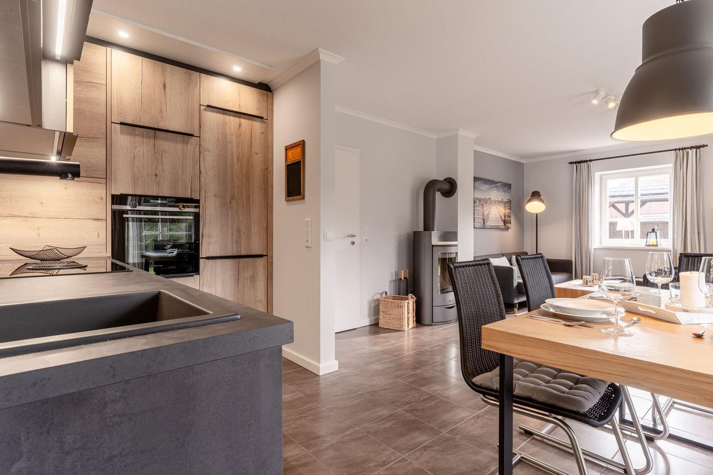 Im Erdgeschoss befindet sich der Wohnraum mit einer offenen Küche und einem gemütlichen Essbereich. Die Küche ist mit nützlichen Geräten voll ausgestattet.