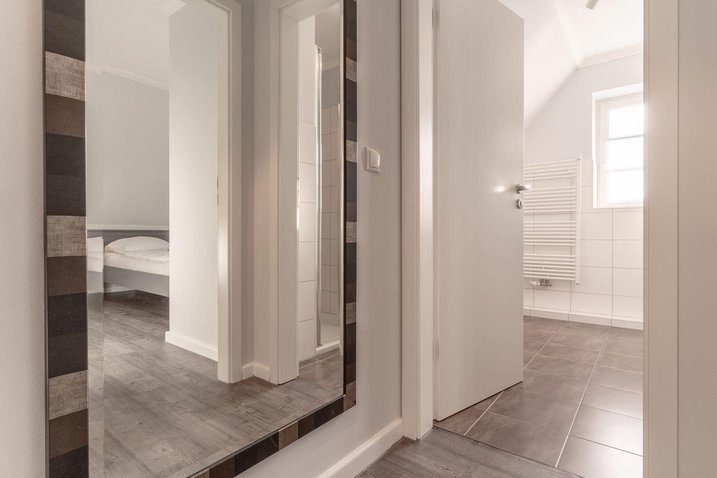 Im Erdgeschoss ist ebenso ein Flur mit Garderobe, ein Gäste-WC und ein Doppelschlafzimmer.