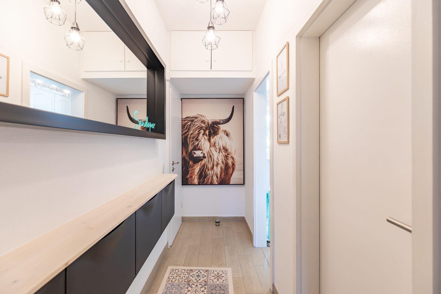 Unsere moderne 3-Zimmer-Ferienwohnung befindet sich in zentraler Lage des Ortsteils "Dorf". Der nächste Strandübergang ist nur 550 m entfernt. Geschäfte, Restaurants, Bäckerei und der Wochenmarkt sind fußläufig hervorragend erreichbar.