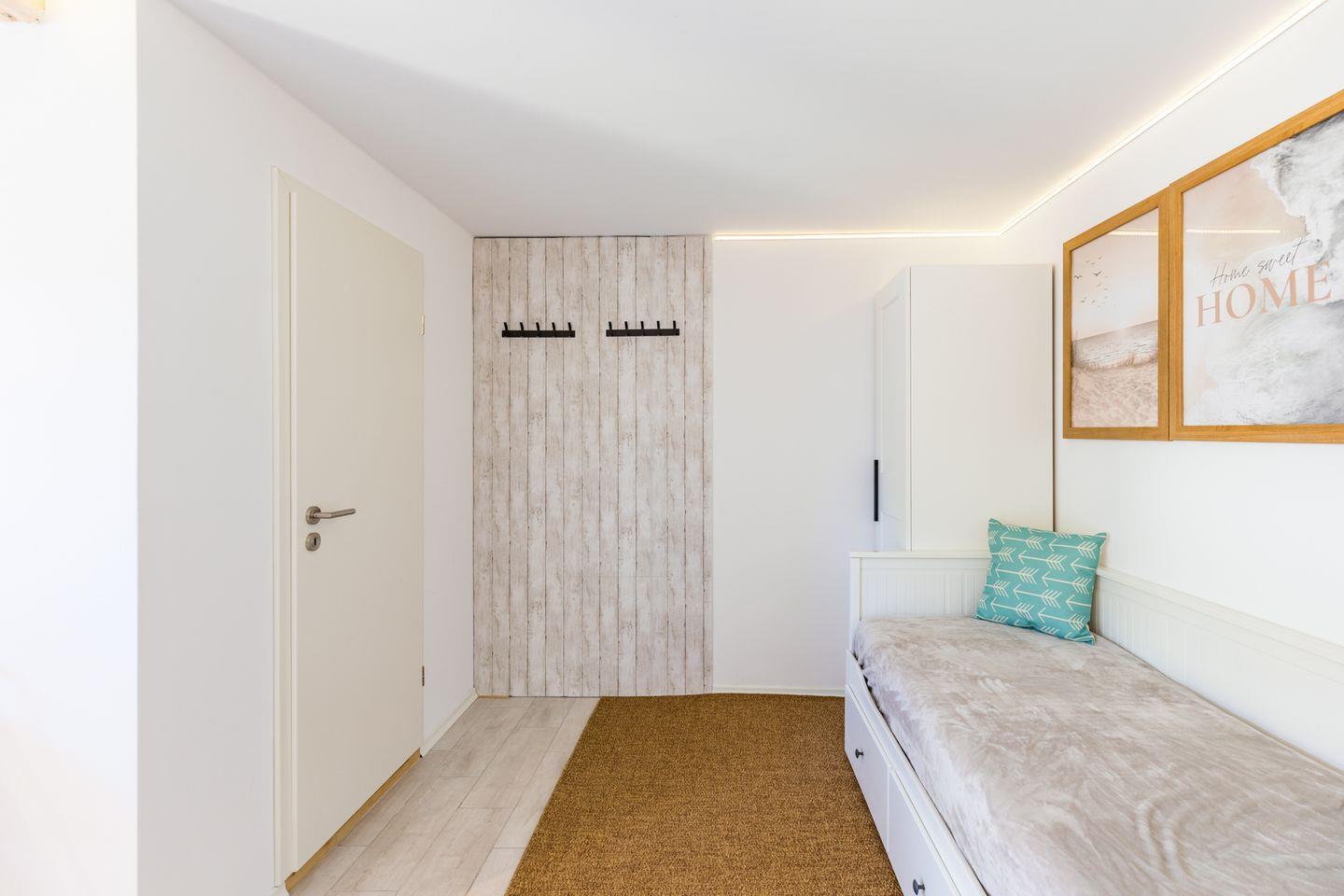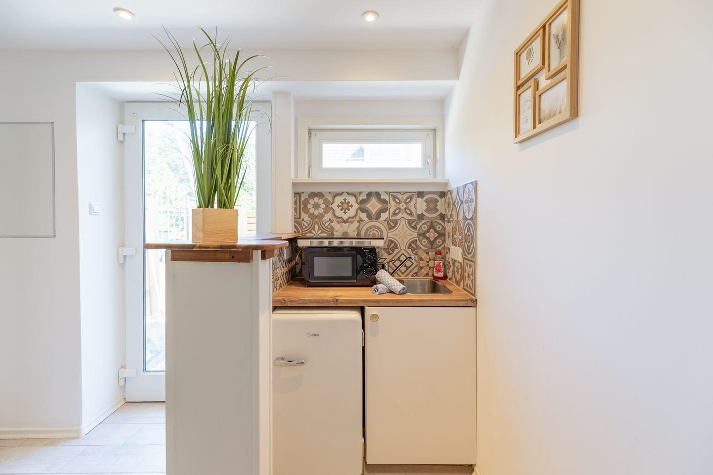 Die 2023 komplett renovierte, ebenerdige Wohnung ist 20 qm groß und geeignet für bis zu 2 Erwachsene. Sie verfügt über einen Essbereich, ein Kojenbett mit einer Stehlampe, dass Sie zum Schlafen ausziehen können und tagsüber als Sofa benutzen können und eine kleine Kochnische mit 2-Plattenkochfeld, Mikrowelle mit Backofenfunktion und Kühlschrank. Das moderne Duschbad rundet das Bild ab.