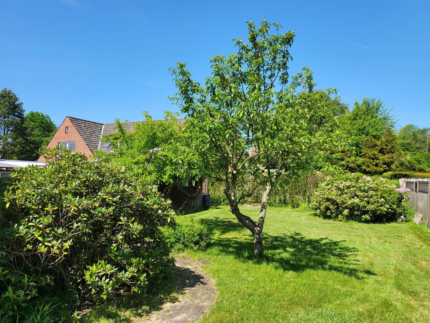 Das Apartment Lüttje Diek mit 14 qm ist im Erdgeschoß des Hinterhauses. Der schöne Garten wird gemeinschaftlich genutzt.