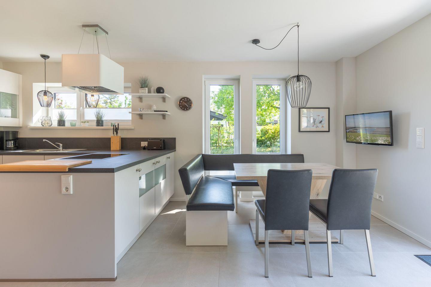 Genießen Sie am großen Esstisch ein Familiendinner, ein ausgiebiges Urlaubsfrühstück oder gesellige Spieleabende.