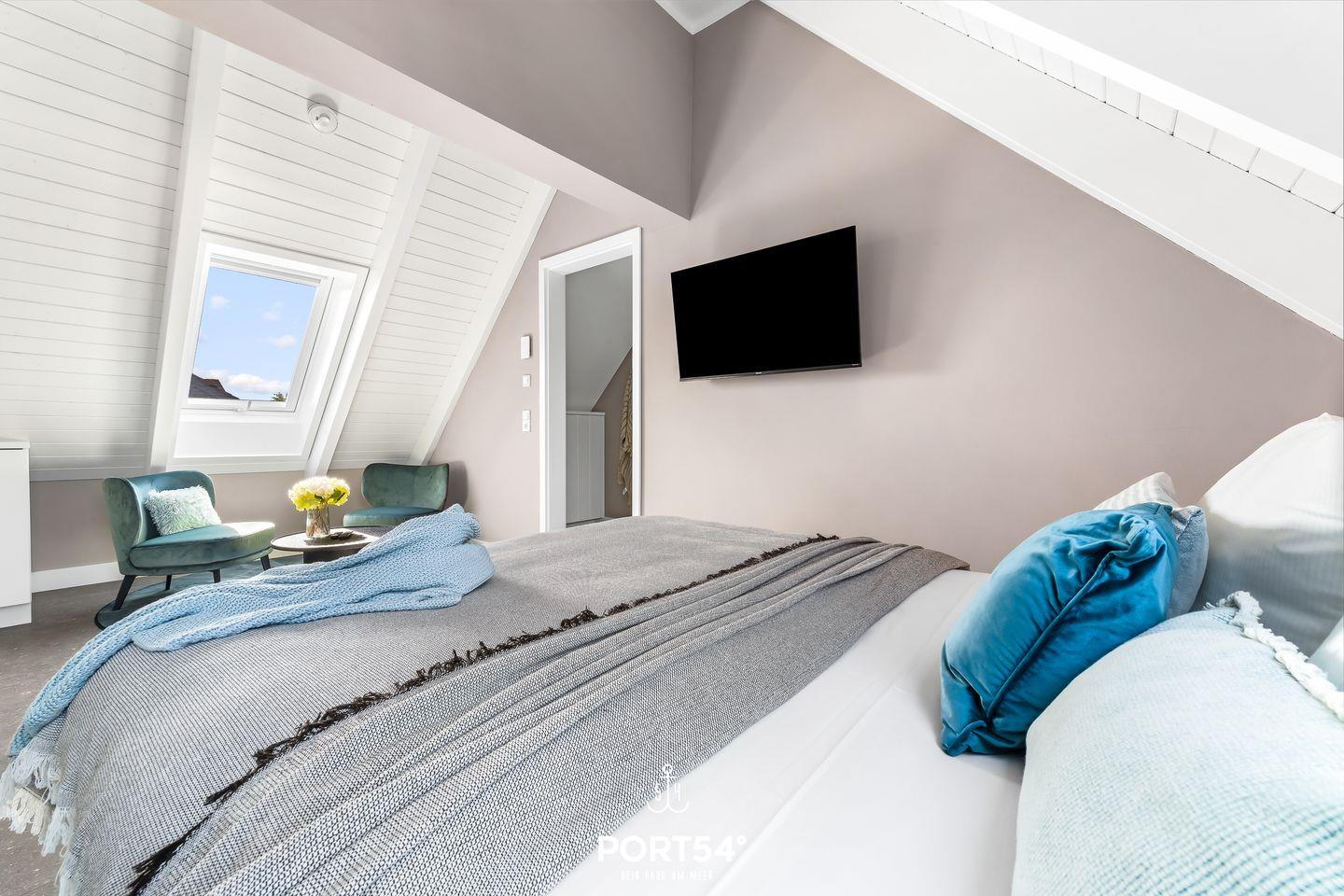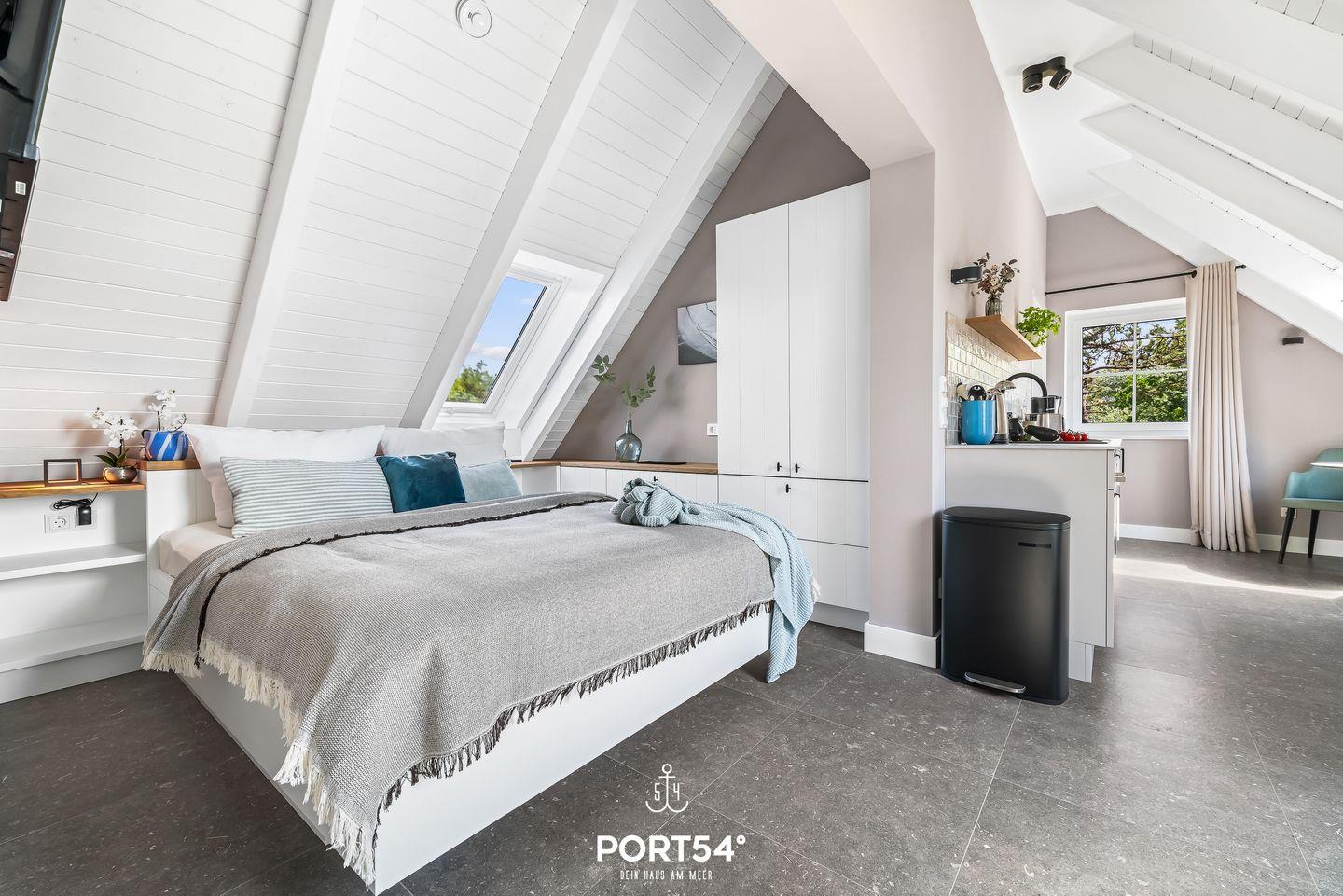 Die Ferienwohnung "Genießen" in St. Peter- Ording ist eine moderne 40 m² Wohnung im 2. Obergeschoss für 2 Personen. mit einem offenen Schlafzimmer, einem kleinen Wohnbereich mit zwei gemütlichen Sesseln und einem Badezimmer. WLAN, SAT- TV, kostenloser Parkplatz, Haustiere sind gerne willkommen. Der Sandstrand liegt wenige Gehminuten entfernt, Einkaufsmöglichkeiten und Restaurants erreichen Sie ebenfalls in wenigen Minuten.