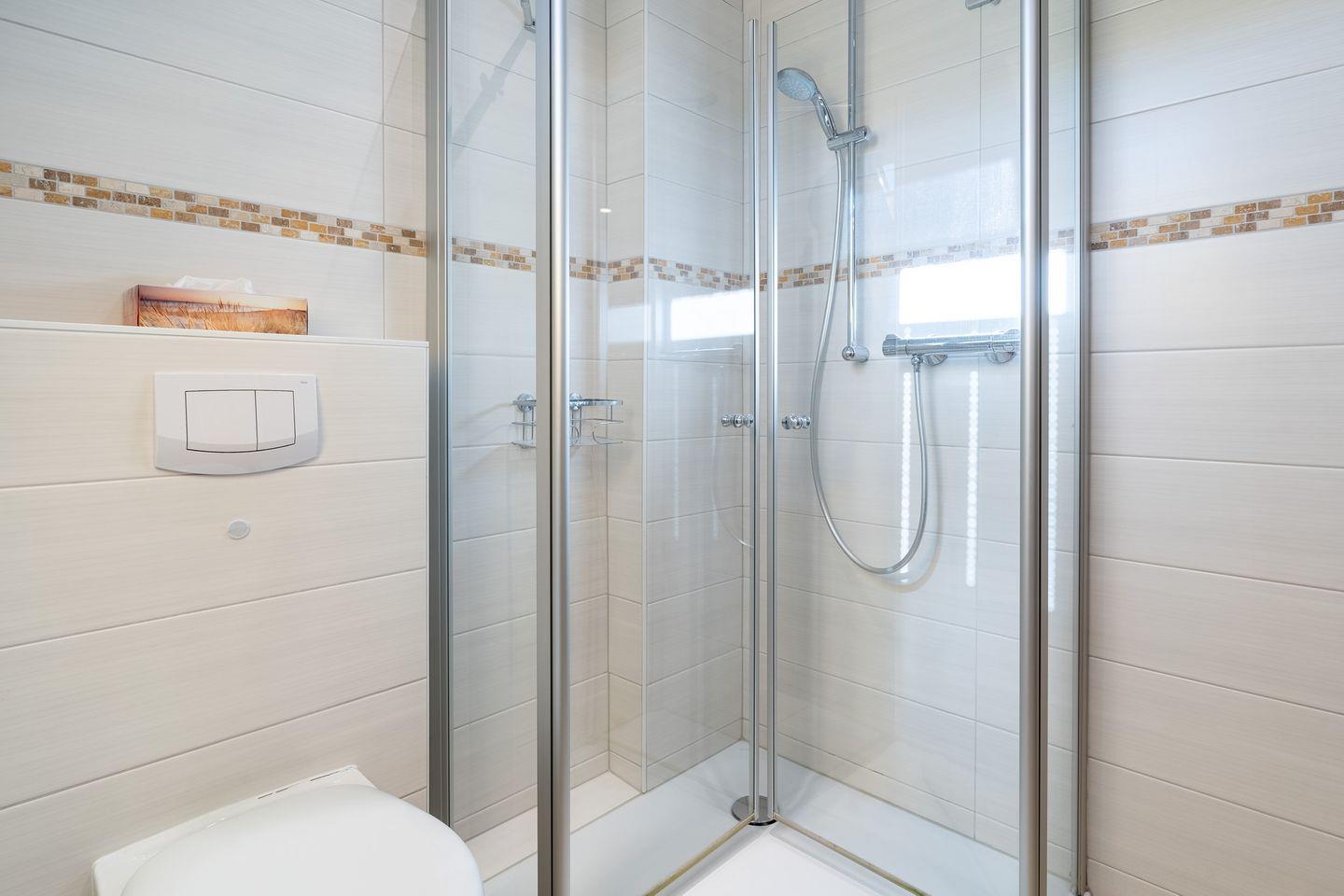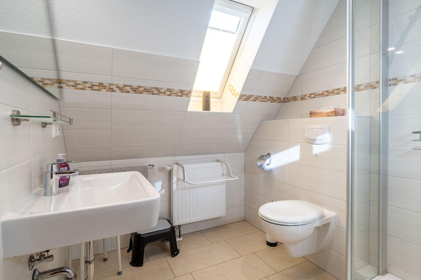 • Badezimmer: Helles Duschbad mit Fenster für natürliche Belüftung.