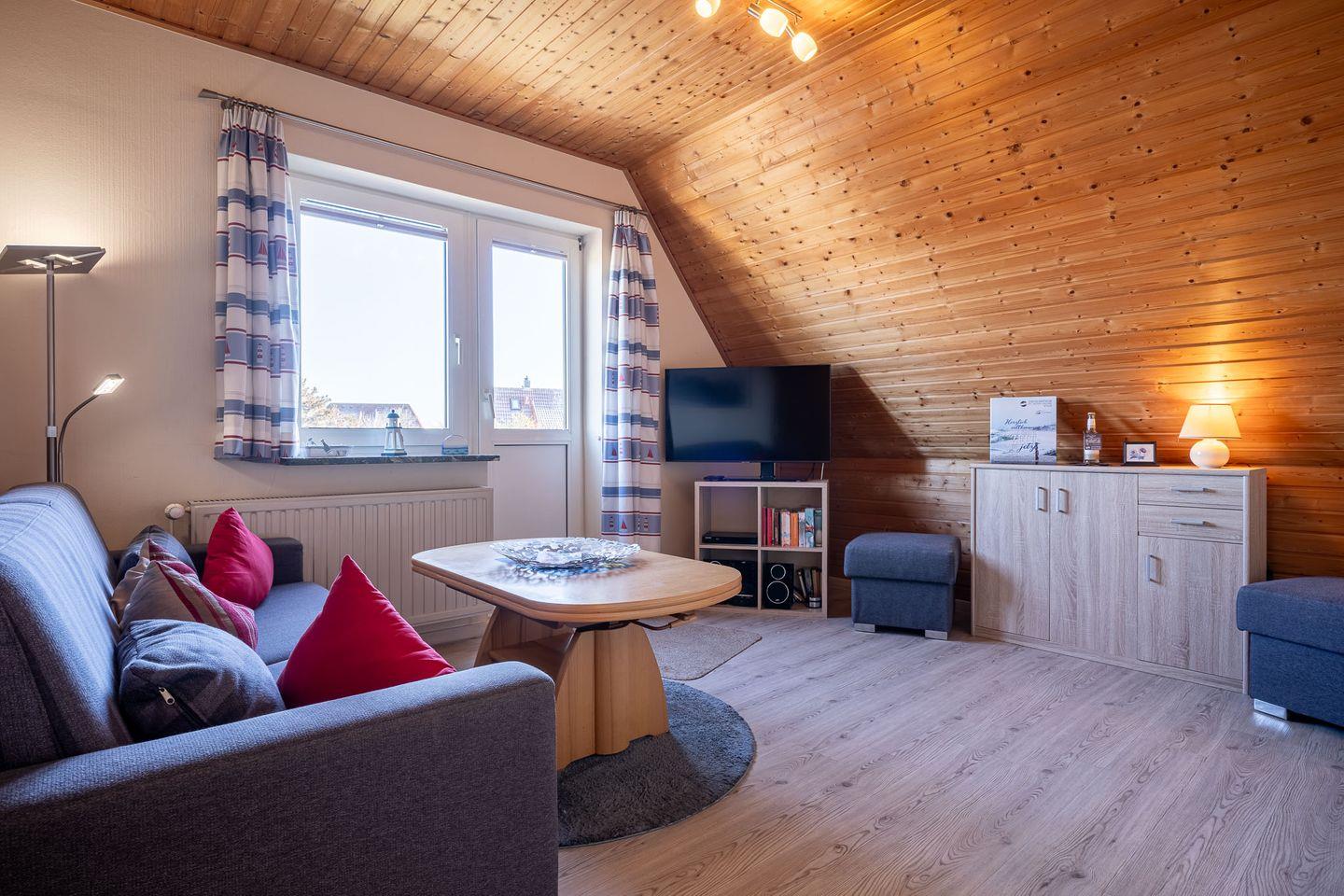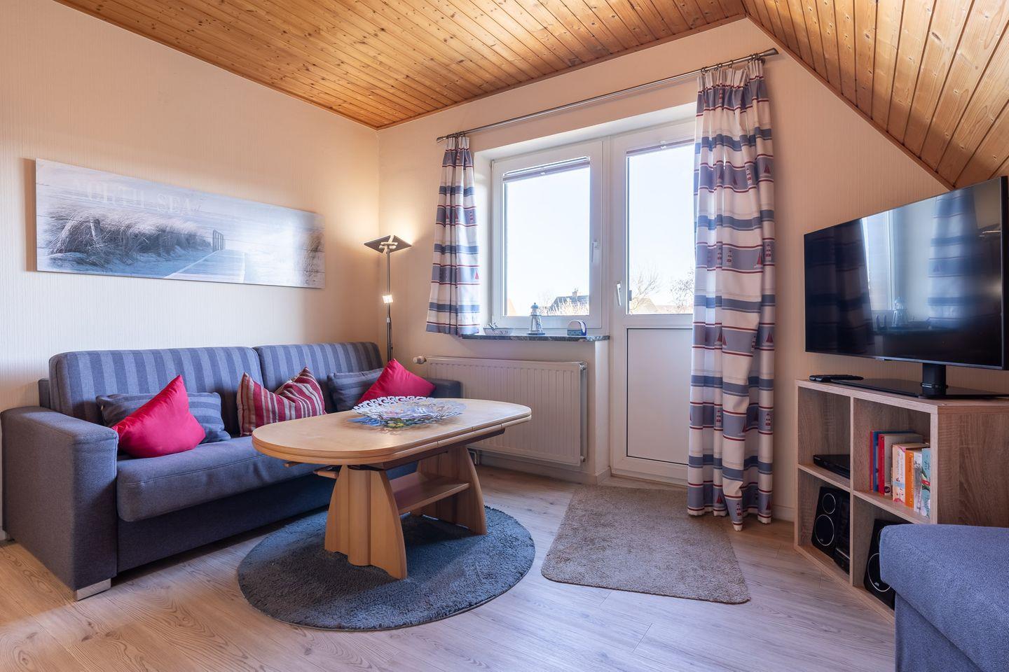 • Wohnbereich: Gemütliches Schlafsofa für zusätzliche Übernachtungsmöglichkeiten.