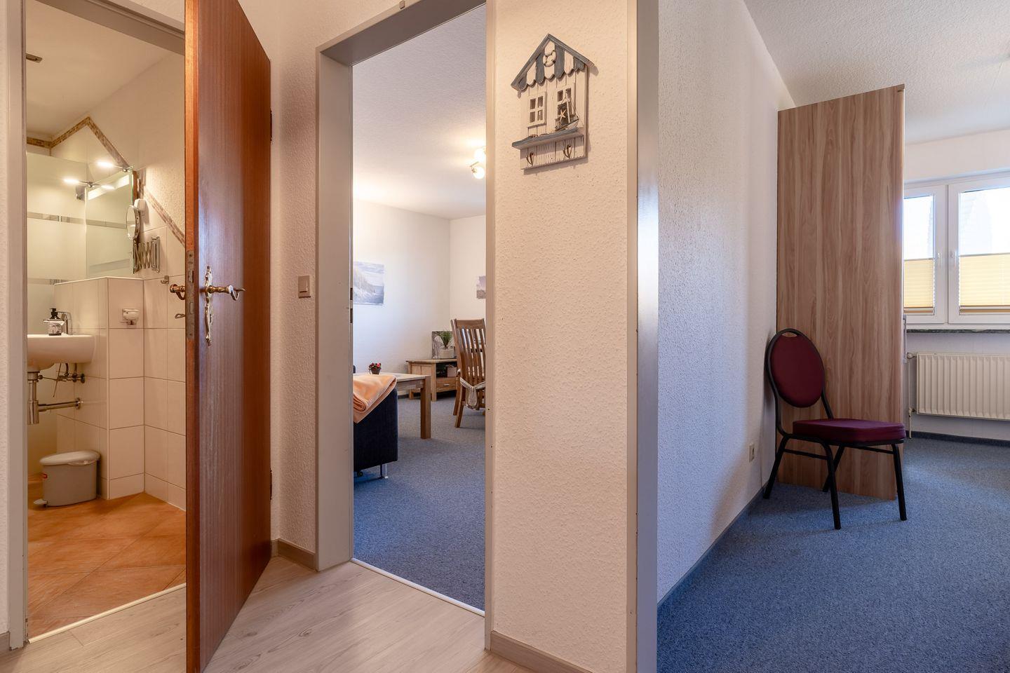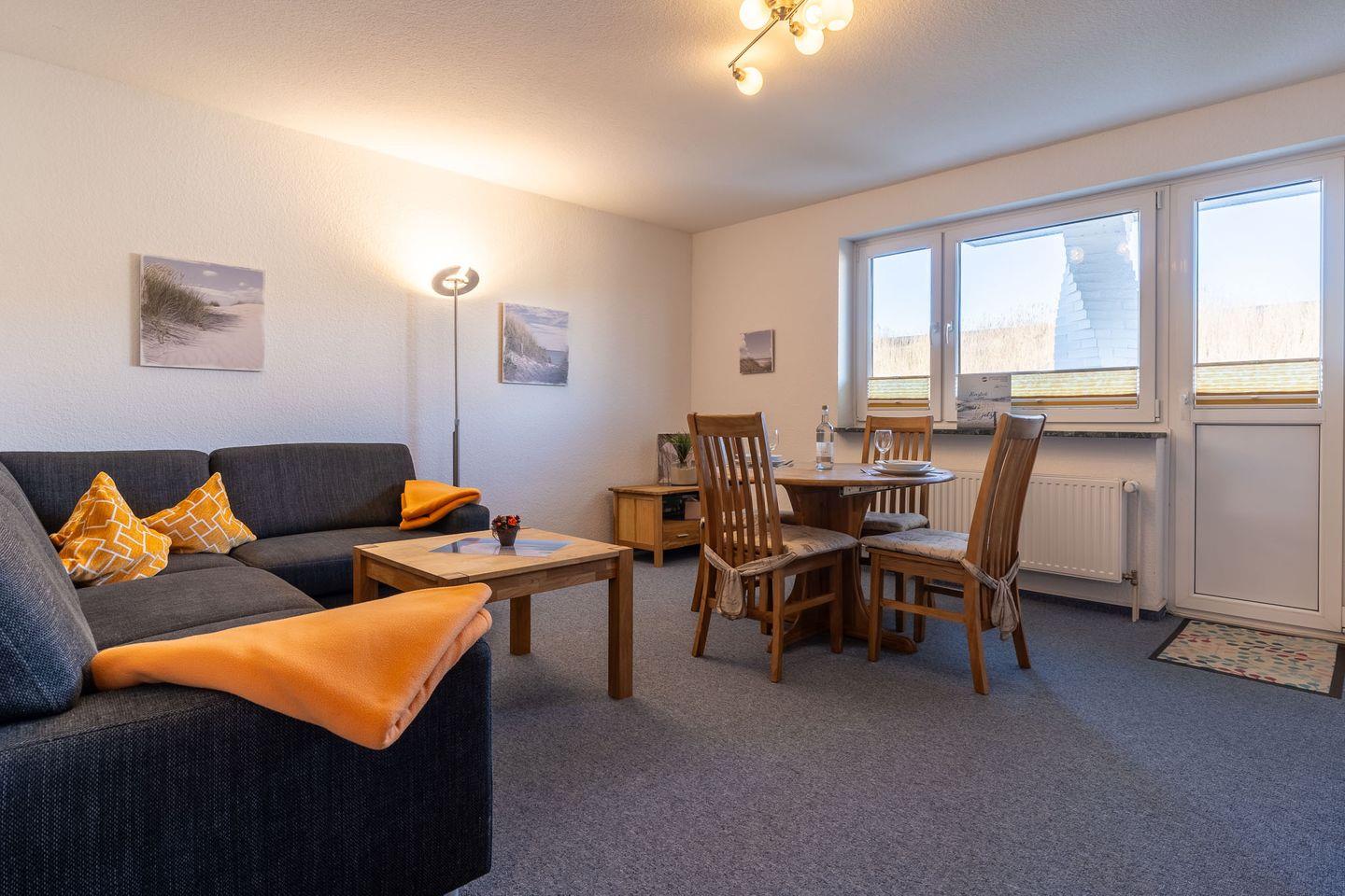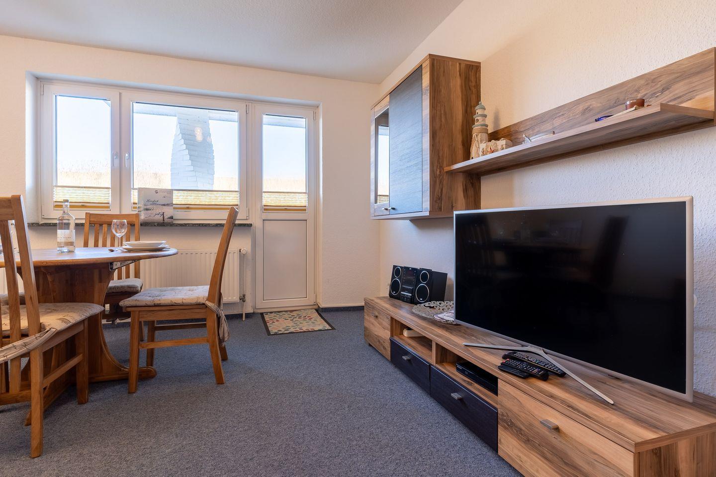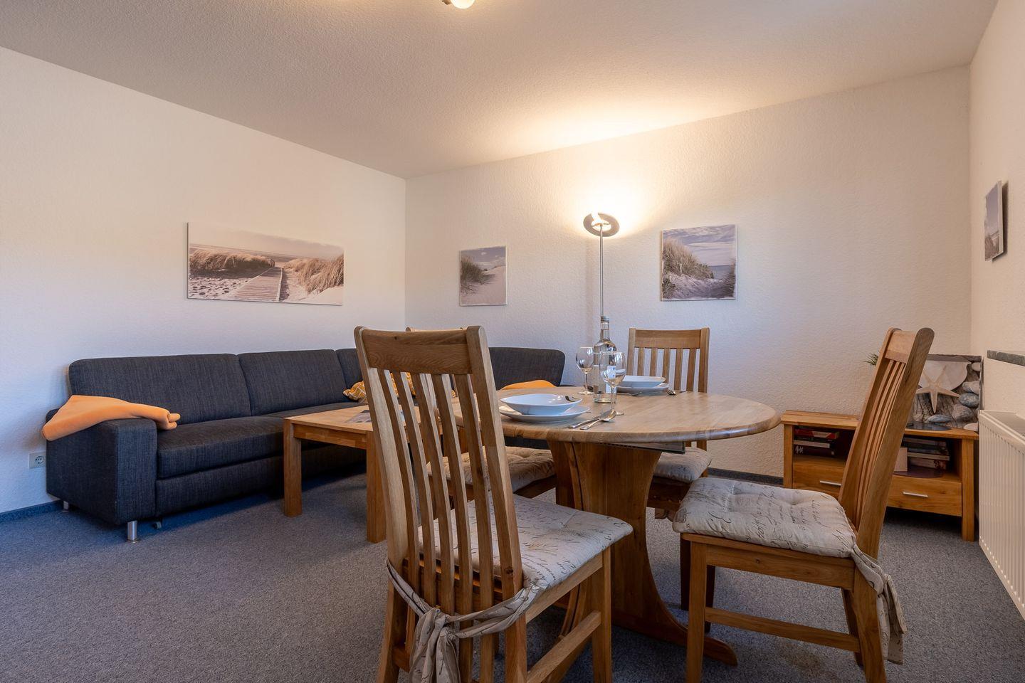 Diese frisch renovierte Erdgeschosswohnung bietet auf 50 m² Platz für bis zu 4 Personen. Die Süd-Ost-Terrasse zur Straßenseite lädt zum Entspannen ein und ist mit Gartenmöbeln ausgestattet (nutzbar vom 01.04. bis 30.10.).