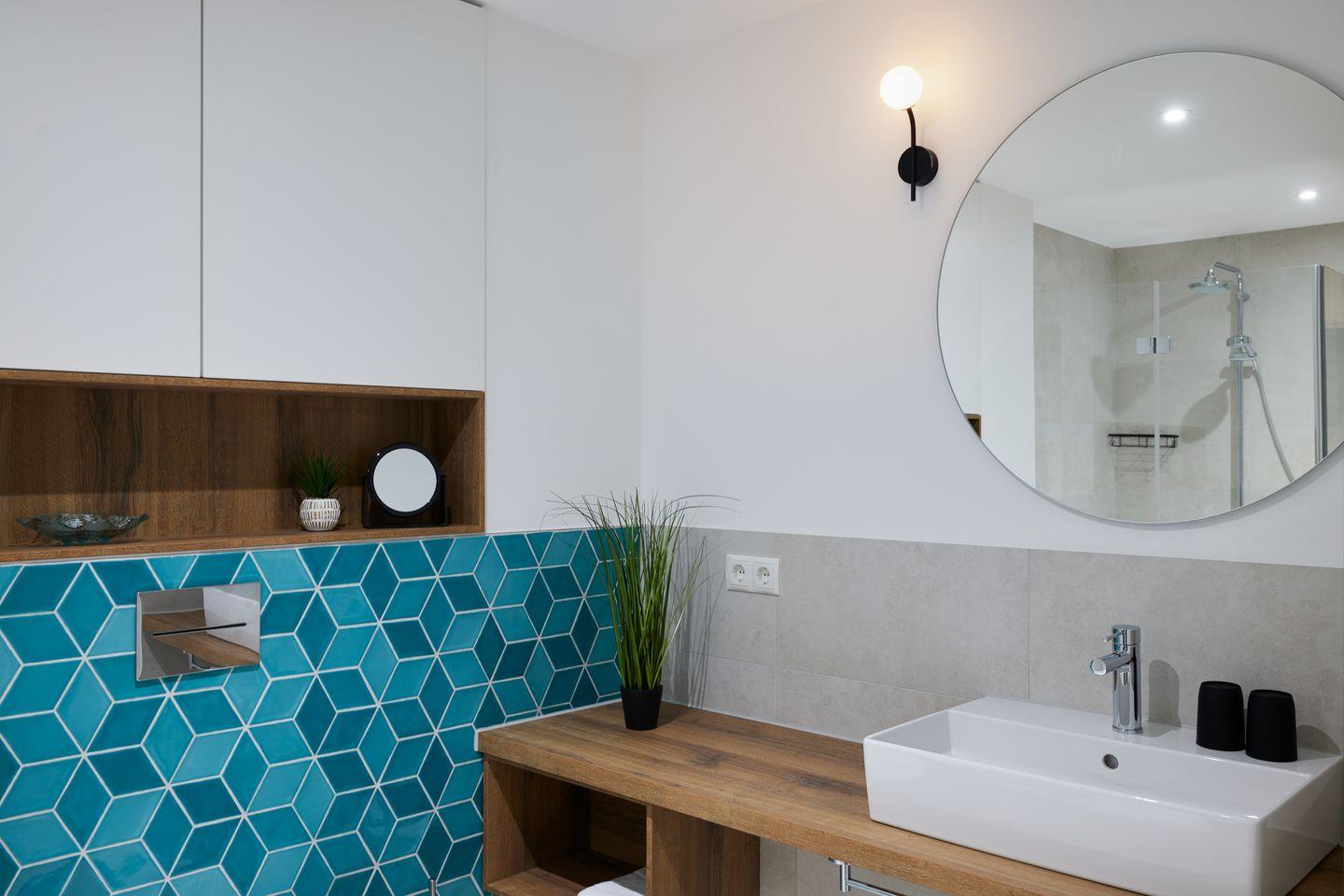 Der offene Grundriss des ca. 94 m² großen Apartments schafft ein großzügiges Wohngefühl. Der Wohn- und Essbereich mit integrierter Küche und Design-Polstermöbeln lädt zum entspannten Zusammensein ein und grenzt direkt an Ihre private Sonnenterrasse. Ein Highlight ist die hochwertige Küche mit türkisfarbenen Fronten und goldenen Armaturen – stilvoll und maritim. Zwei Schlafzimmer mit bequemen Boxspringbetten bieten Platz für vier Gäste. Besonders komfortabel: zwei moderne Badezimmer mit begehbarer Dusche, eines davon mit eigener Holzsauna.
