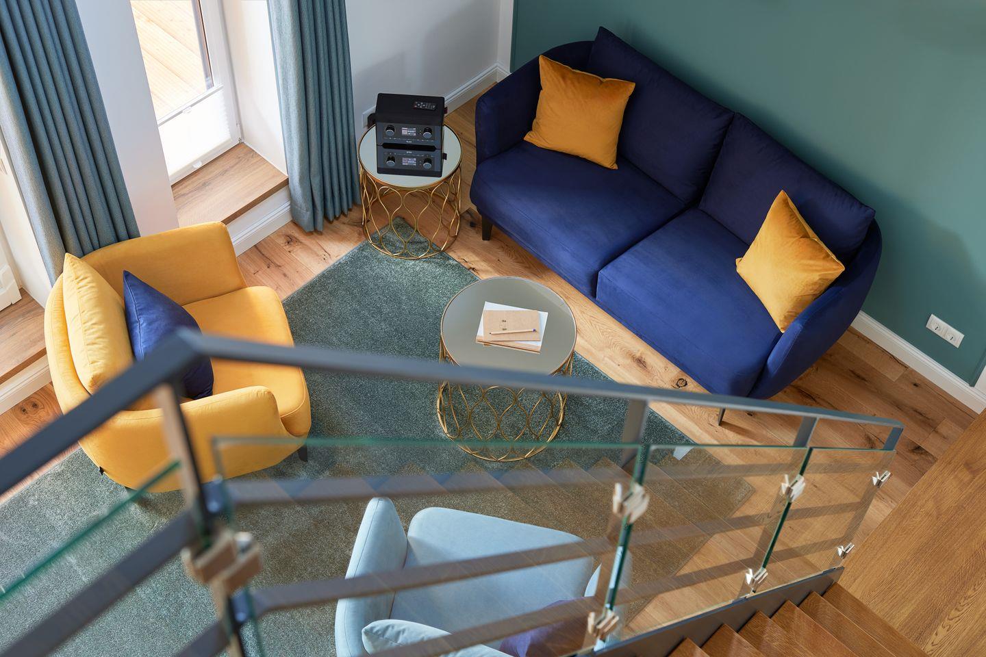 Vom Wohnbereich aus gelangen Sie über eine Treppe auf die offene Galerie, die zum Entspannen einlädt.