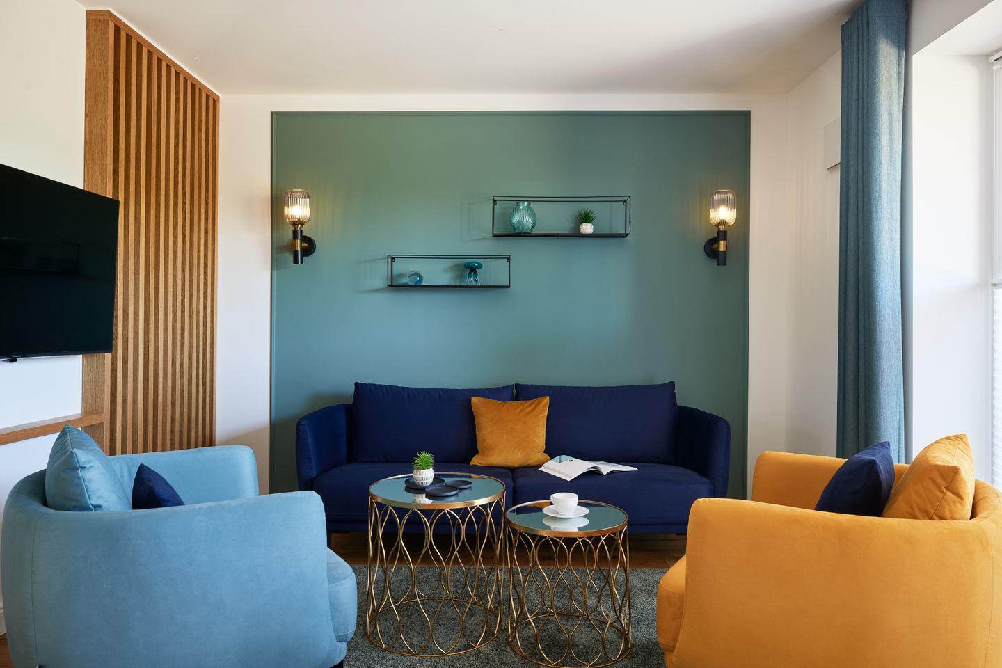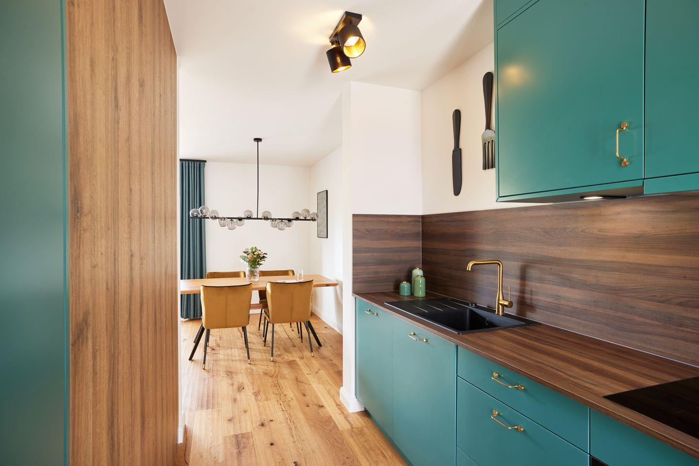 Der ca. 125 m² große Hausteil bietet alles, was Sie sich für eine erholsame Nordsee-Auszeit wünschen: im Erdgeschoss lädt der moderne Wohn- und Essbereich mit offener Küche und Design-Polstermöbeln zum entspannten Zusammensein ein. Die stilvolle Küche mit türkisfarbenen Fronten und goldenen Armaturen ist nicht nur optisch ein Hingucker, sondern auch umfassend ausgestattet. An den Wohnbereich schließt Sie Ihre große Sonnenterrasse mit Blick in die Sandlandschaft an. Zudem finden Sie im Erdgeschoss ein Gäste-WC.