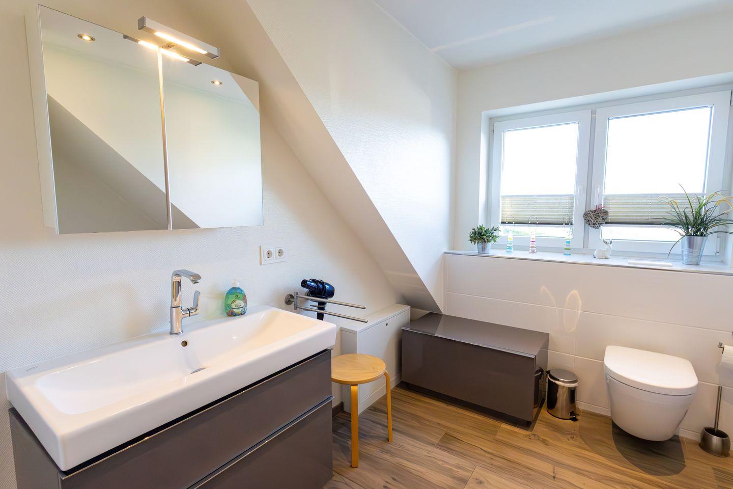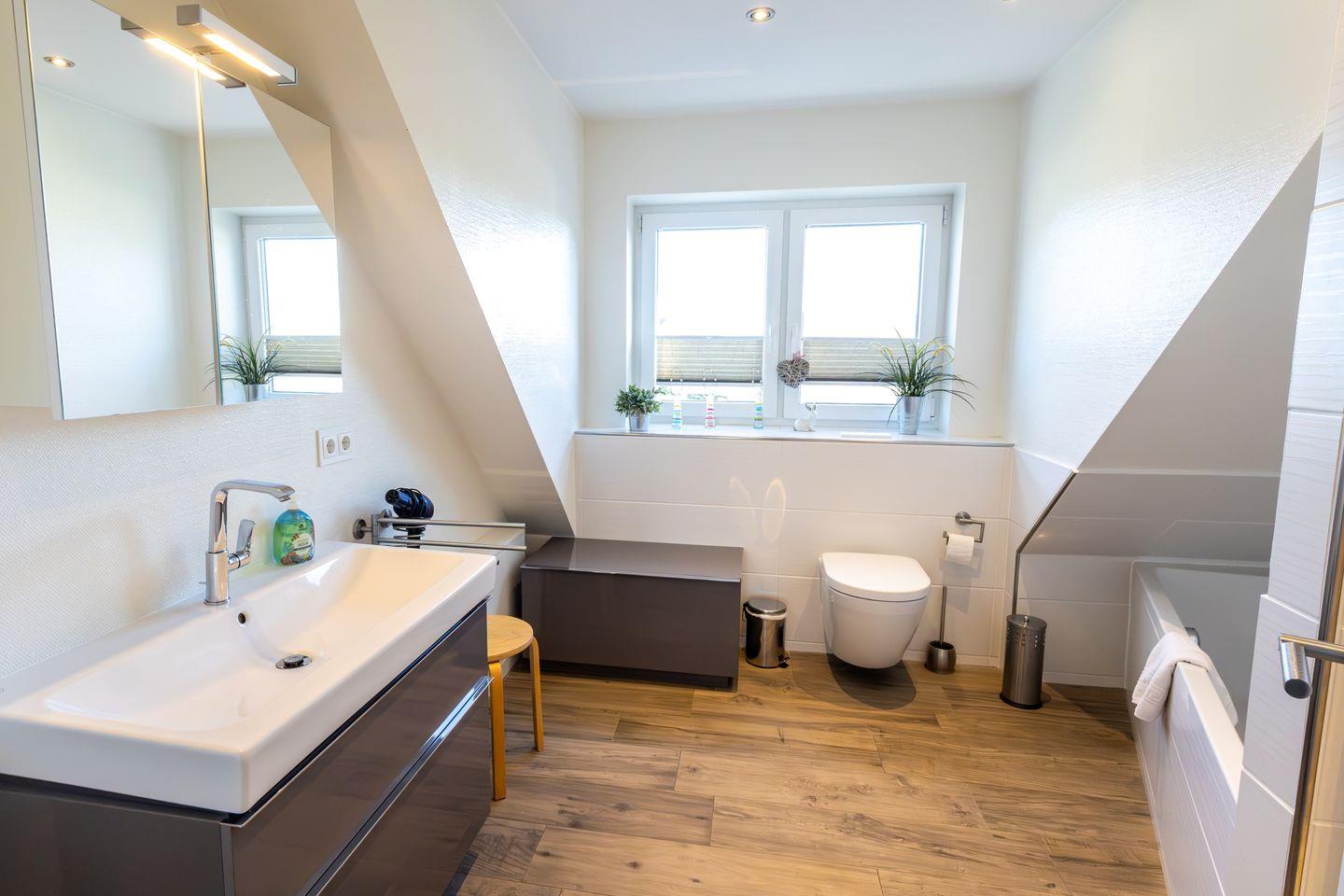 Obergeschoss: ein Schlafzimmer mit Doppelbett (180x200cm-Einzelmatratzen) , ein Schlafzimmer mit Doppelbett (180x200 cm- Einzelmatratzen), ein Duschbad/WC mit Badewanne, ein Schlafzimmer mit Doppelbett (160x200cm). Alle Schlafzimmer sind mit einem TV ausgestattet