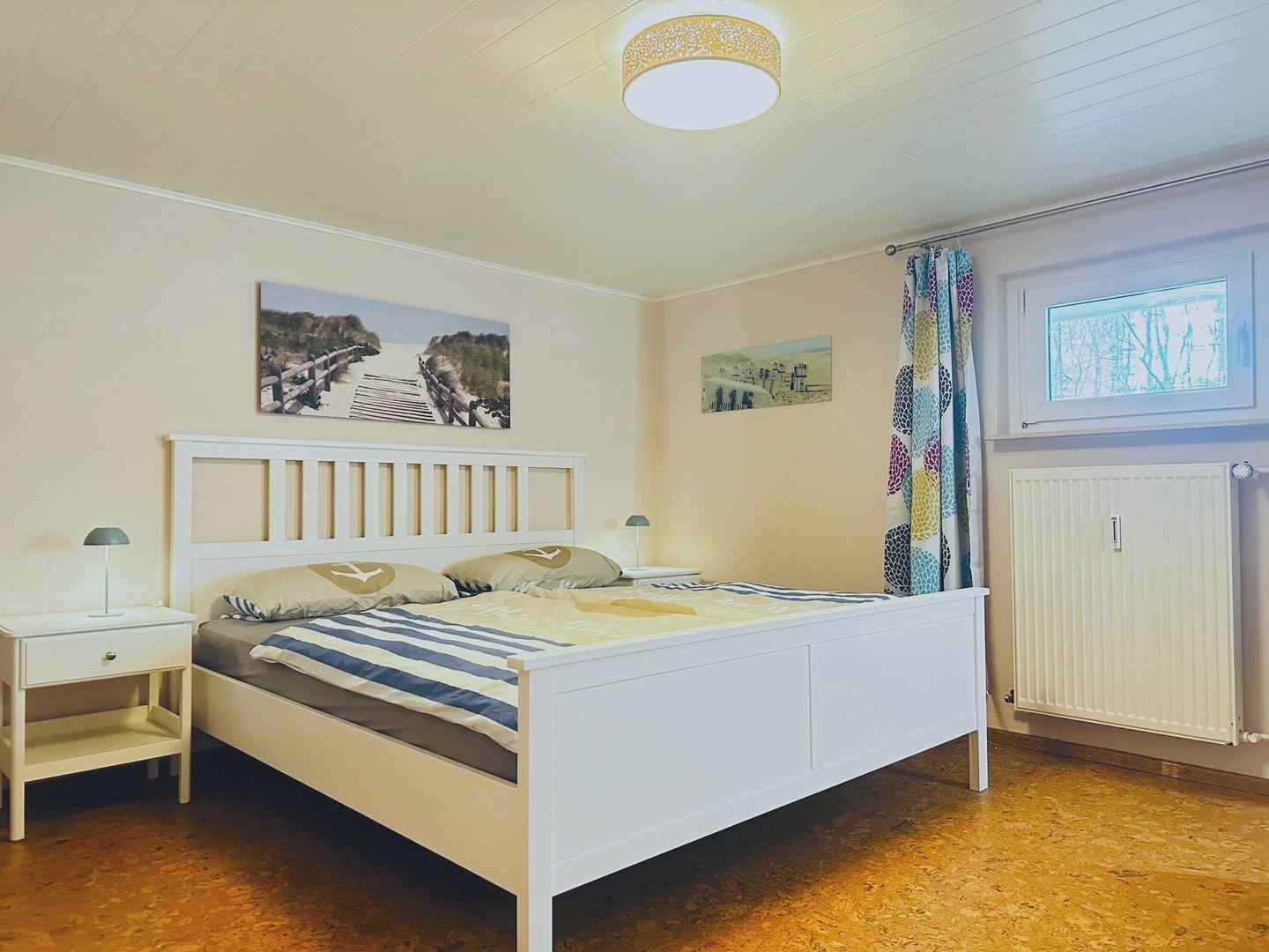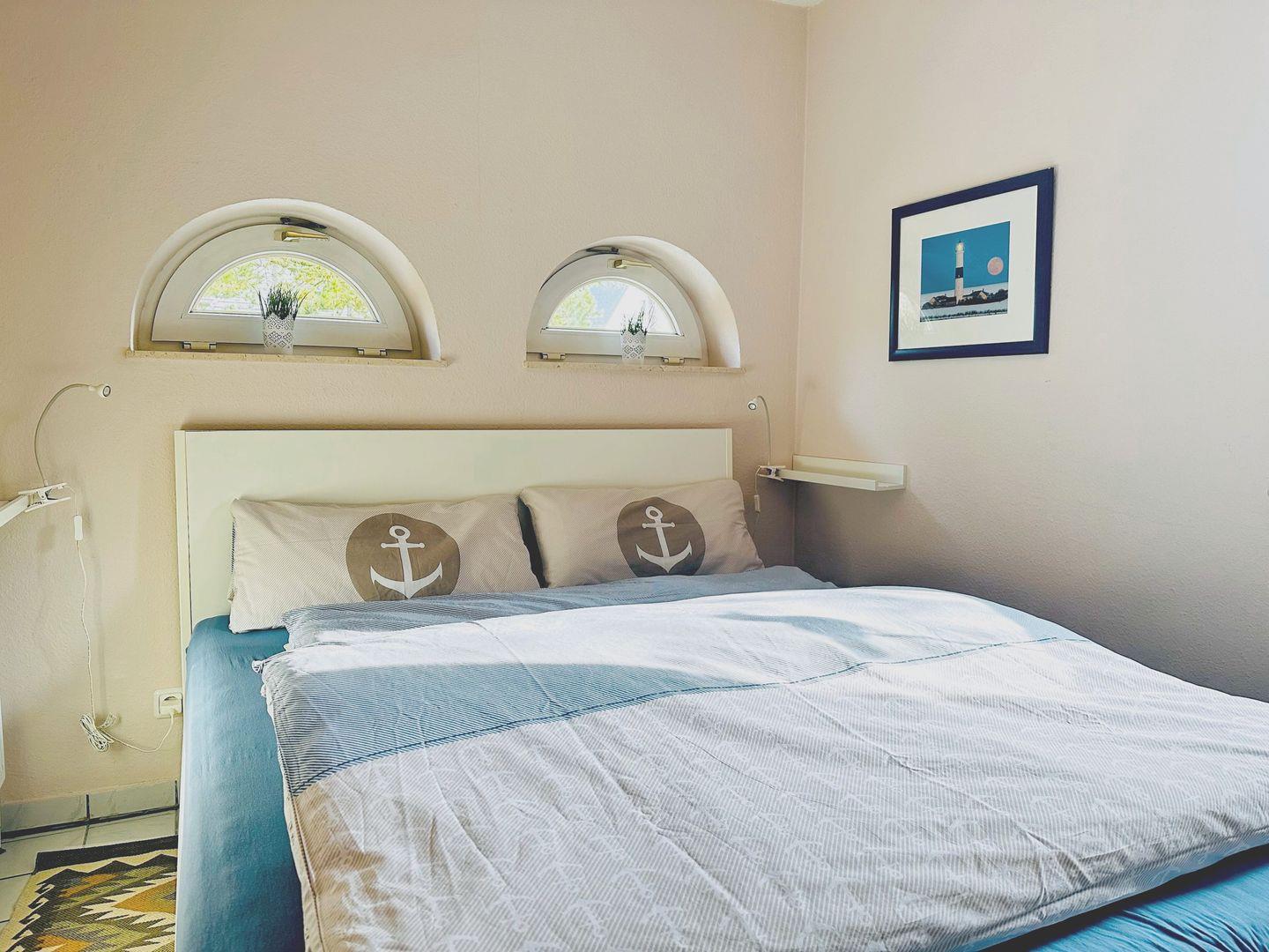 Die Wohnung verfügt über zwei Schlafzimmer. Ein Schlafzimmer befindet sich im Erdgeschoss und ist mit einem Doppelbett (1,60 m Breite), Fliegengitter am Fenster sowie einem Kleiderschrank ausgestattet. Das zweite Schlafzimmer liegt im Souterrain und ist über eine offene Treppe erreichbar. Der Souterrainbereich ist durch eine Tür vom Wohnbereich abgetrennt. Das Schlafzimmer bietet ein Doppelbett (1,80 m Breite), Fliegengitter, Kleiderschrank sowie einen Fernseher.