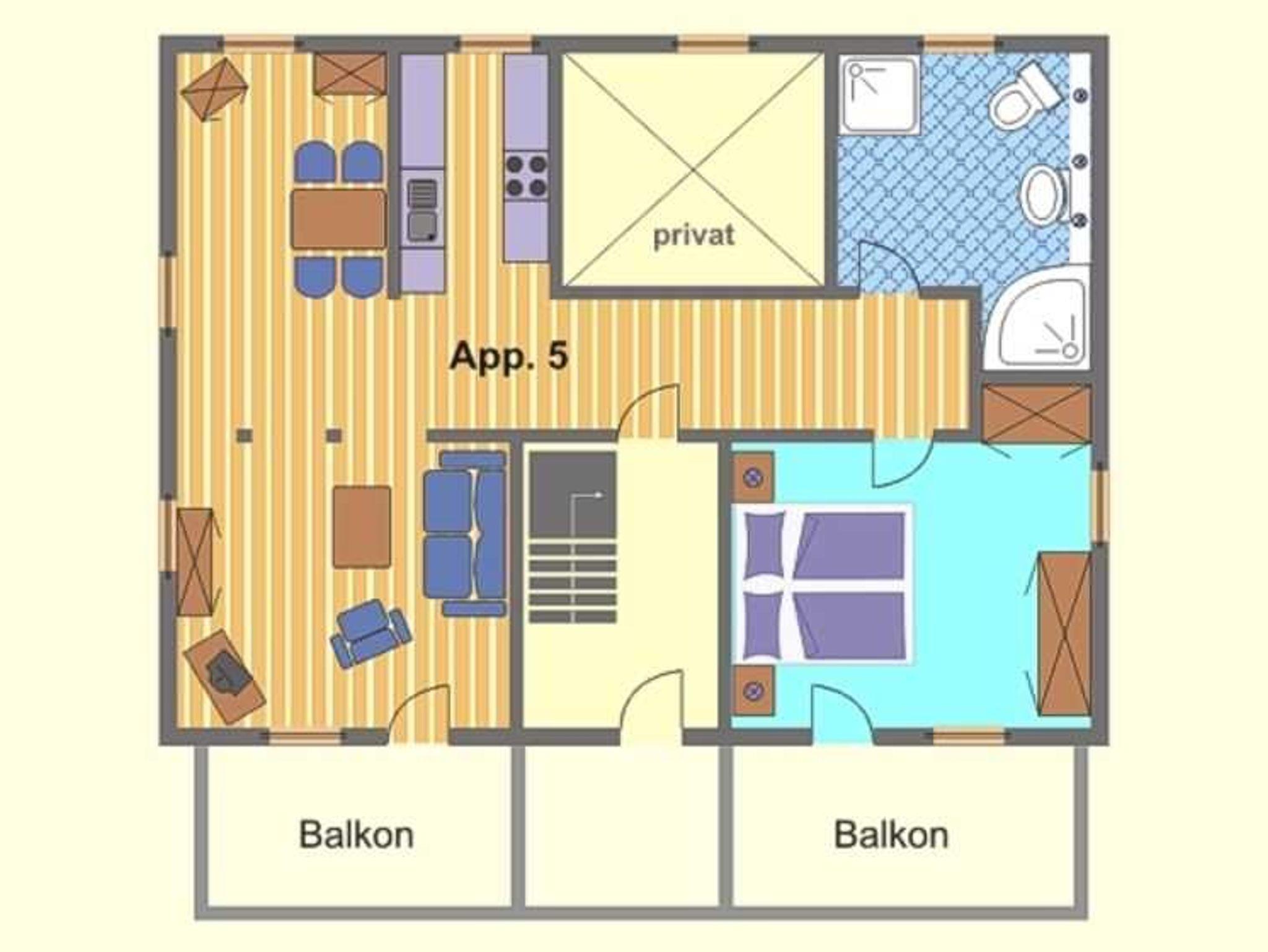 Das Appartement für 2-6 Personen ist mit einem großzügigen Wohnzimmer mit Aufbettung und Esszimmer, Sitzecke, Flat-TV, Stereoanlage ein Südbalkon mit herrlichem Seeblick ausgestattet.