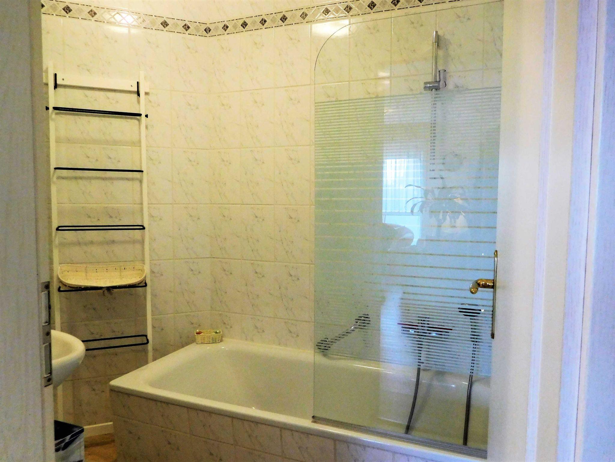 ein gepflegtes Bad mit Wanne und Glasduschwand.komplette Wohnung ist mit Außenrollläden versehen,eigener PKW_Stellplatz im Hof,Fahrradständer nicht einsehbar