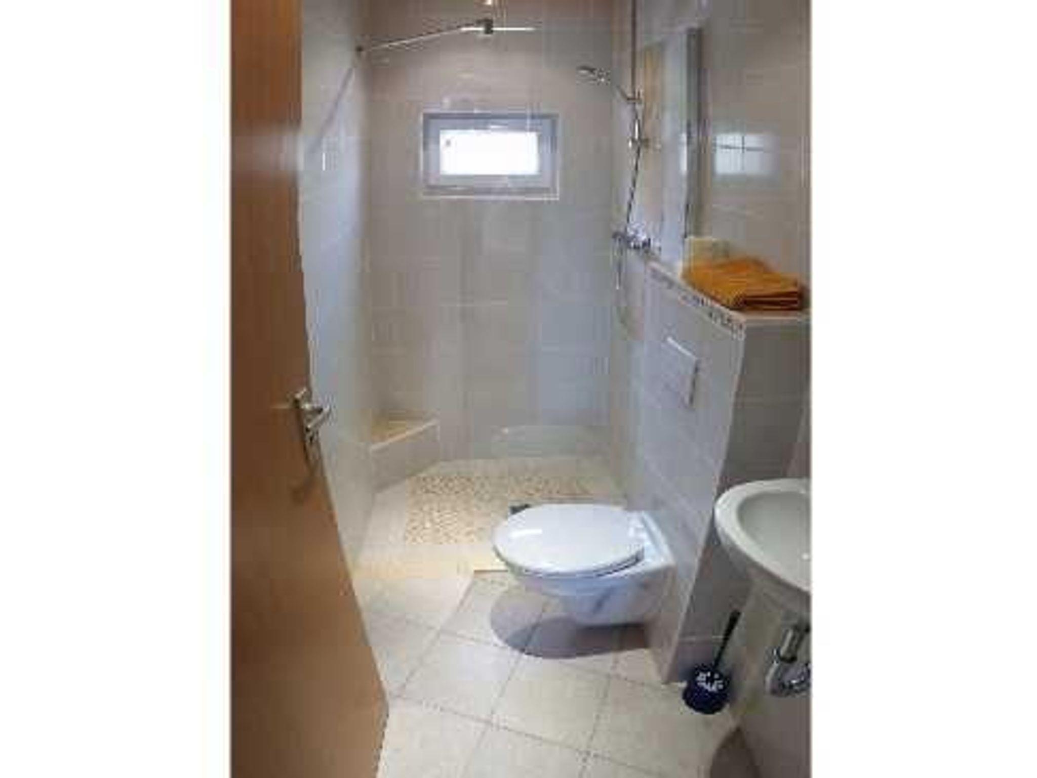 ? Das Bad verfügt über eine ebenerdige Regendusche und Toilette.