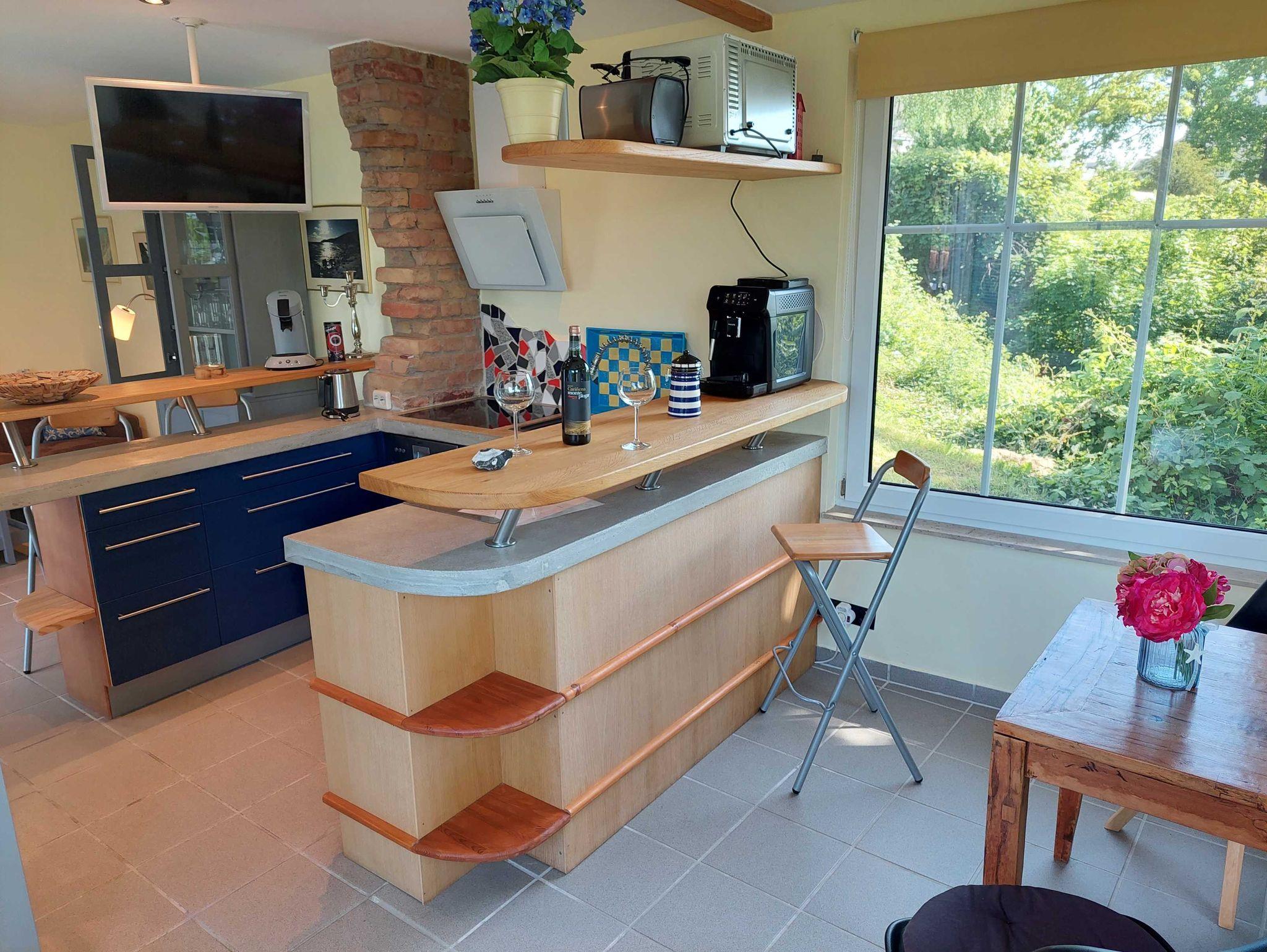 Unser Ferienbungalow ist ein kleines freistehendes Haus mit eigener Terrasse. Es hat ein Schlafzimmer mit einem Doppelbett (1,80x2,00m) , zwei Nachtschränkchen, einen grossen Kleiderschrank, einen Wohn- und Essbereich mit einer komplett eingerichteten Einbauküche mit Eierkocher, Kaffeevollautomat, Toaster, Wasserkocher, 4 Platten-Cerankochfeld, kleiner Backofen, Kühlschrank, Geschirrspülautomat, ausreichend Geschirr und Besteck, Salz und Pfeffer, Zucker, Geschirrtuch, u.v.m. .Sie finden bei ihrer Anreise auch diverse Getränke im Kühlschrank, die Sie gegen Entgeld gerne nutzen können.I