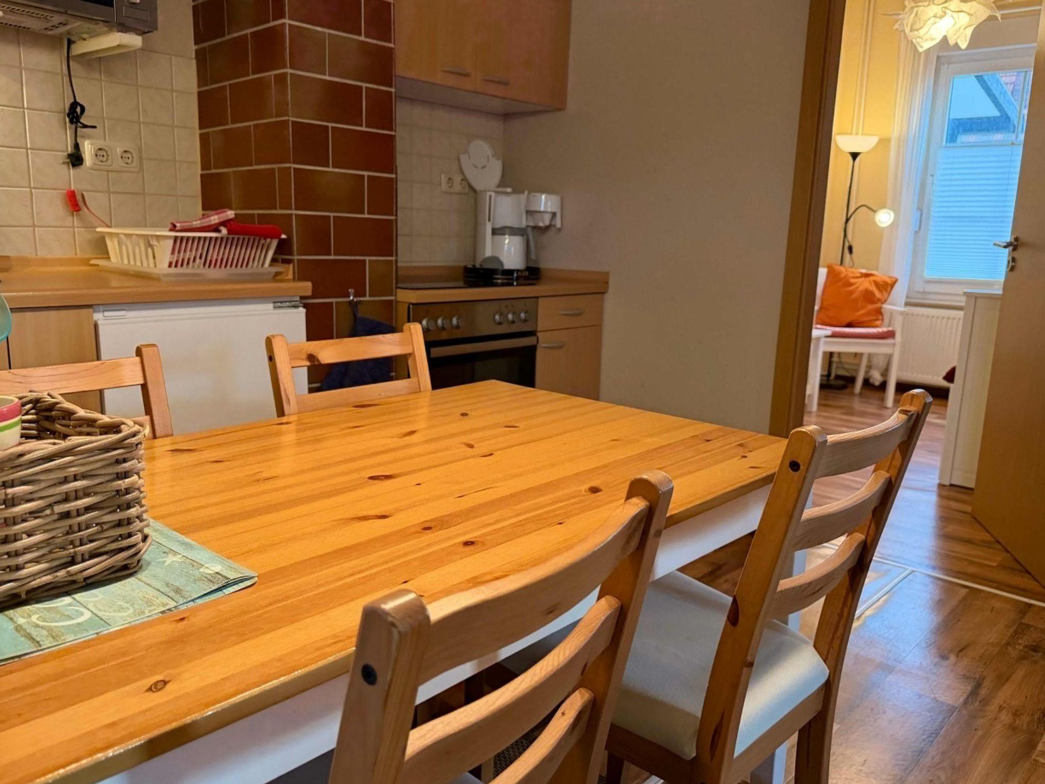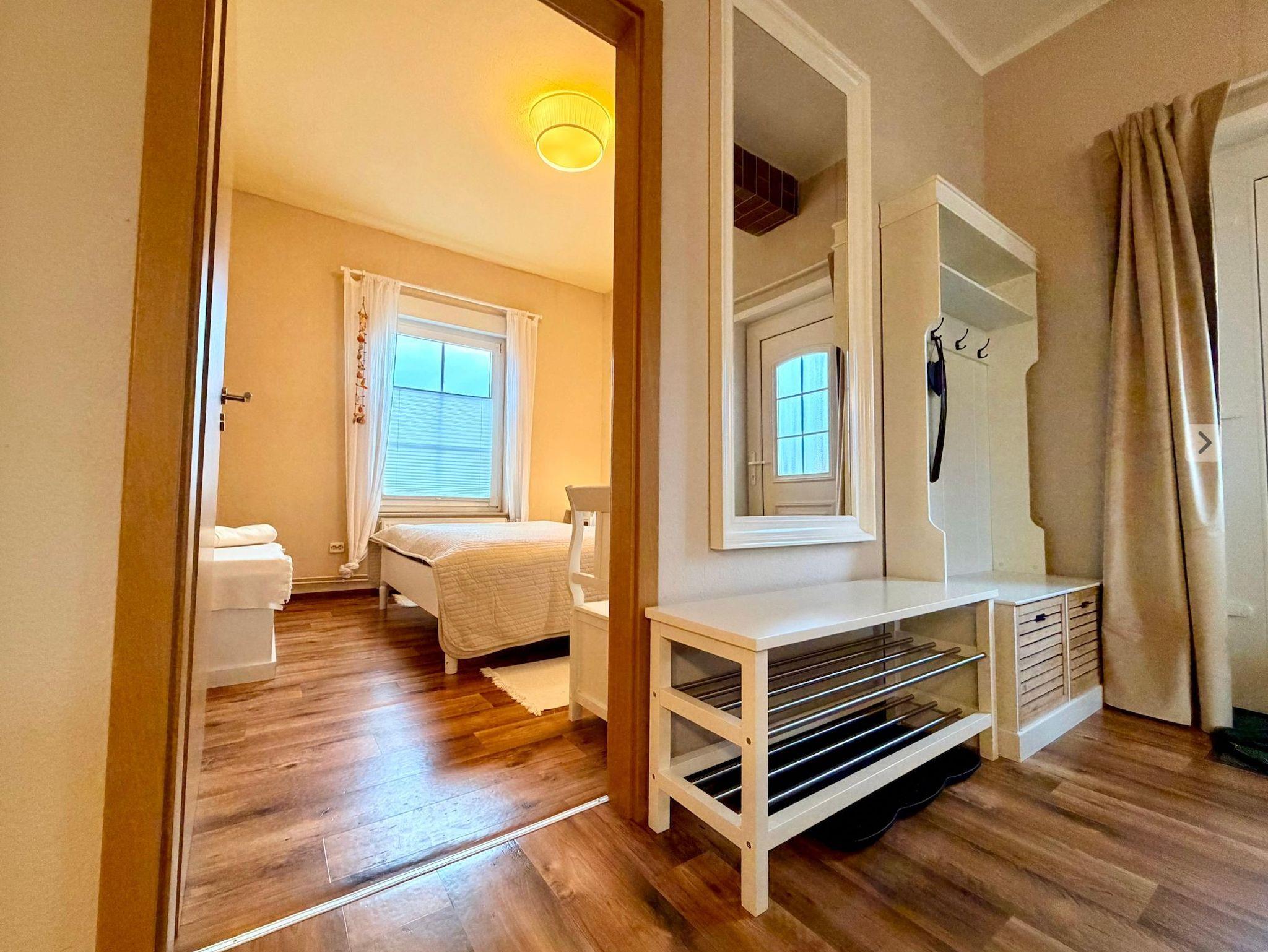 Die Ferienwohnung Muschelkiste bietet 50 m² mit separatem Eingang und eigenem Parkplatz. Sie vergühz über 2 Schlafzimmer (Doppelbett + Einzelbett mit Aufbettung), großes Wohnzimmer mit offener Küche und Essplatz für 4 Personen.