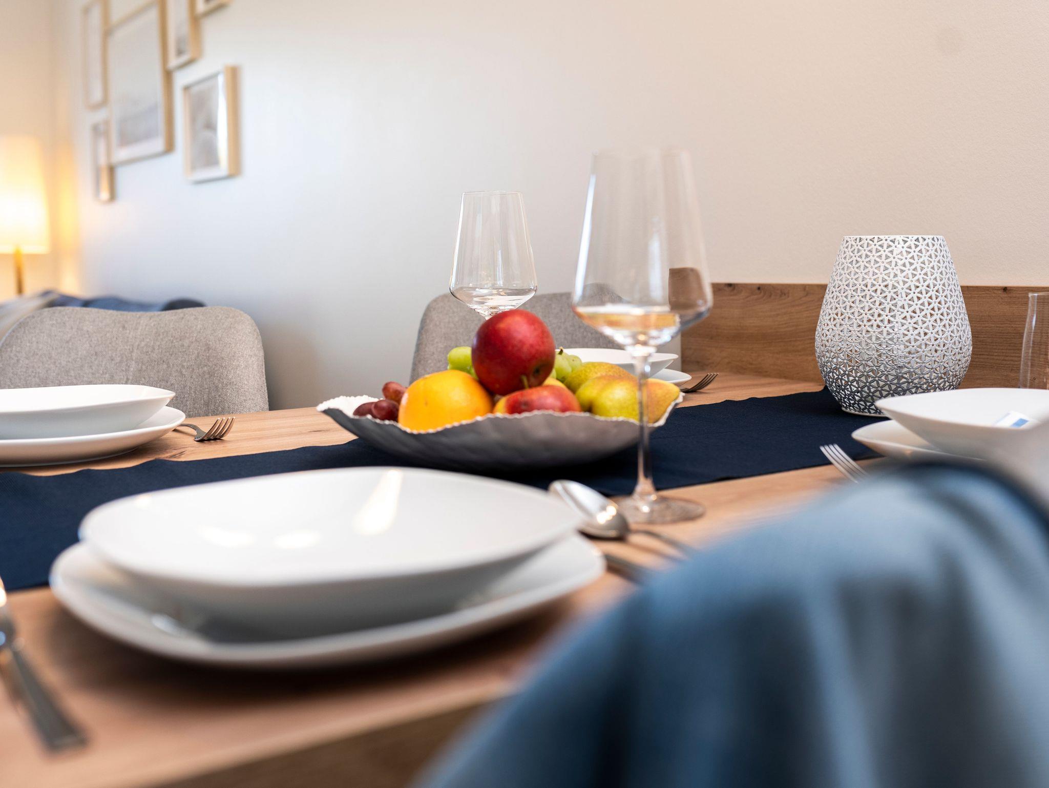 Unsere ca. 55 m² große Wohnung bietet genügend Platz für vier Personen. Verteilt auf zwei Schlafzimmer, einem großen Wohn-Essbereich mit voll ausgestatteter Küche, hoffen wir Ihnen einen Ort zum Verweilen und Entspannen bieten zu können.
