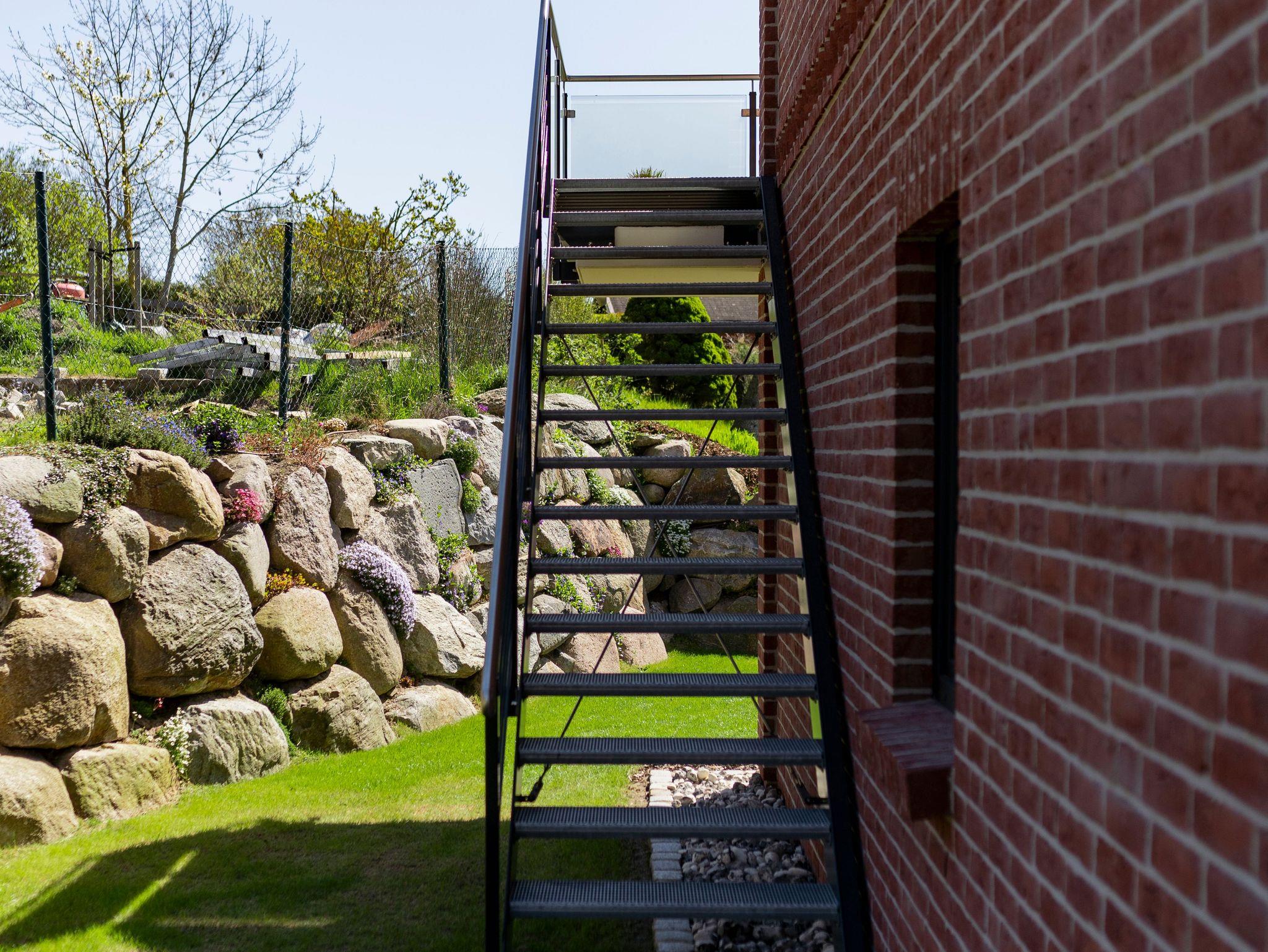 Die Ferienwohnung Jonte befindet sich im Obergeschoss des Hauses und ist über eine Außentreppe, welche auf den zur Wohnung gehörenden Balkon führt, zu erreichen.