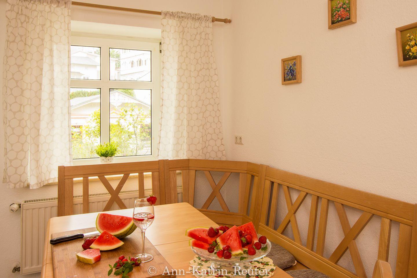 Helle, modern ausgestattete Wohnung in sehr ruhiger Lage im Erdgeschoß eines über 100 Jahre alten, in den letzten Jahren völlig modernisierten Hauses. Die Wohnung verfügt über eine große Küche kompletter Küchenzeile mit Herd, Mikrowelle, Kühlschrank und Geschirrspüler, Eßecke. Der Blick aus dem Küchenfenster geht über die Bachpromenade auf die Altstadt von Sassnitz mit sehr schönen Häusern in der Bäderarchitektur. Das Wohnzimmer verfügt über eine gemütliche Sitzecke, 2 Sessel und TV. Die Aufbettung für die dritte und 4 Person erfolgt auf der Couch. Das Schlafzimmer ist mit einem Doppelbett ausgestattet und befindet sich zwischen Wohnzimmer und Küche (Durchgangszimmer). Das kleine Bad liegt auf dem Hauptflur und ist klein, aber zweckmäßig mit Dusche, WC und Waschbecken. Zur Wohnung gehört ein Parkplatz.