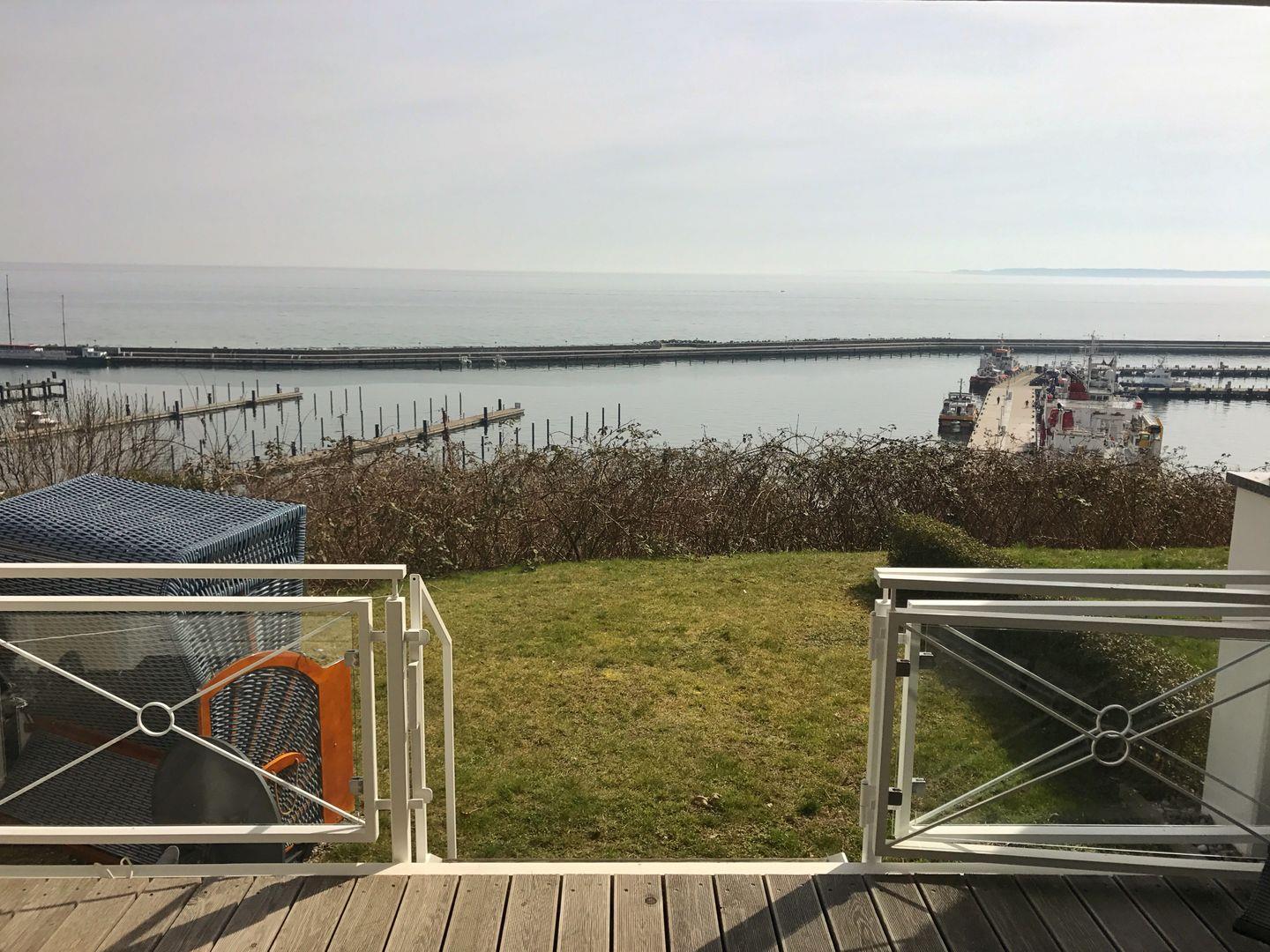 Die 2-Zimmer-Ferienwohnung befindet sich im Erdgeschoss des Appartementhauses "Prinz Heinrich" und gliedert sich in einen Wohnbereich mit tollem Panorama-Meerblick, ein gemütliches Schlafzimmer sowie eine Badezimmer. Vom Wohn- und Essbereich des hellen Appartements, der über eine offene und komplett ausgestattete Küchenzeile verfügt, können Sie über große, bodentiefe Fenster einen traumhaften Blick auf die Ostsee und den Stadhafen Sassnitz genießen. Die bodentiefen Fenster lassen sich großflächig öffnen und ermöglichen den Zutritt zu der nach Süden ausgerichteten, überdachten Terrasse und dem kleinen, der Wohnung zugehörigen, Gartenanteil mit eigenem Strandkorb. Maximal kann dieses tolle Appartement 4 Personen beherbergen, wobei das Schlafzimmer mit großem Doppelbett und Flachbildfernseher über Schlafmöglichkeiten für 2 Personen verfügt und die gemütliche Schlafcouch im Wohnbereich zwei weiteren Personen Schlafplätze bietet. Das Tageslichtbadezimmer des komfortablen Appartements ist mit einer ebenerdigen Glasdusche, Waschbecken und natürliche einem WC ausgestattet. Die Wohnung verfügt über einen eigenen Stellplatz am Haus. Fahrradunterstellmöglichkeit vorhanden.
