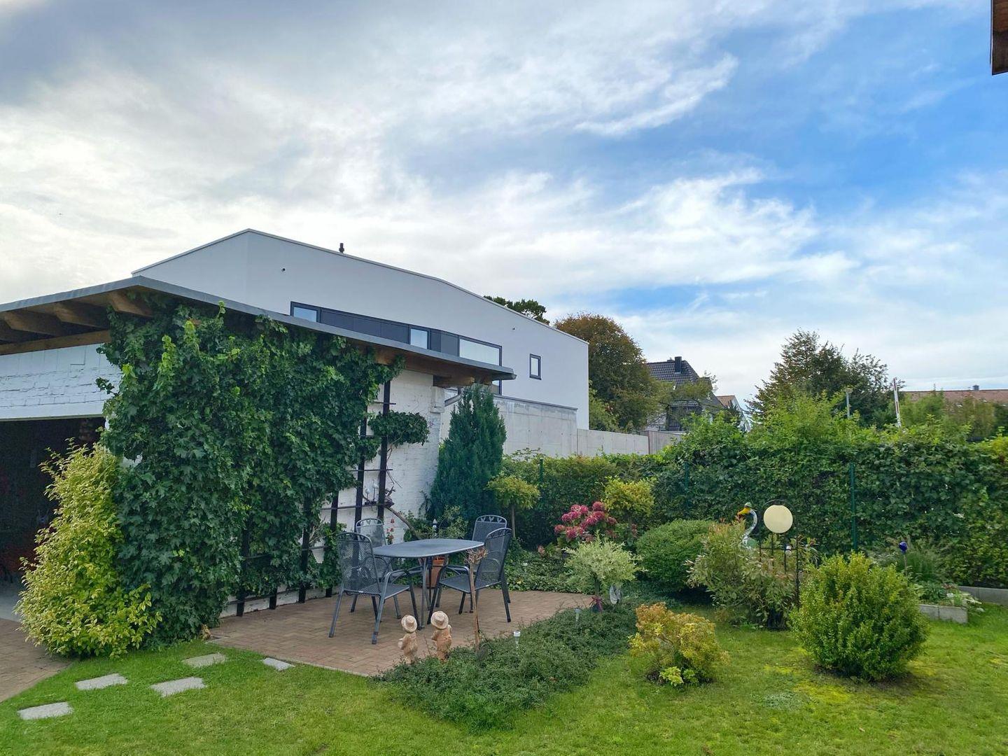 Die 3 Ferienwohnungen im Erdgeschoß sind über jeweils eine kleine, seperate Terasse erreichbar. Für die Fewo 4 im Obergeschoß ist der Sitzplatz auf dem Hof reserviert. Das Grundstück verfügt über 2 Grillplätze mit überdachten Sitzgelegenheiten. Autostellplatz und Fahrradunterstellmöglichkeit befinden sich auf dem Gelände. WLAN ist vorhanden.