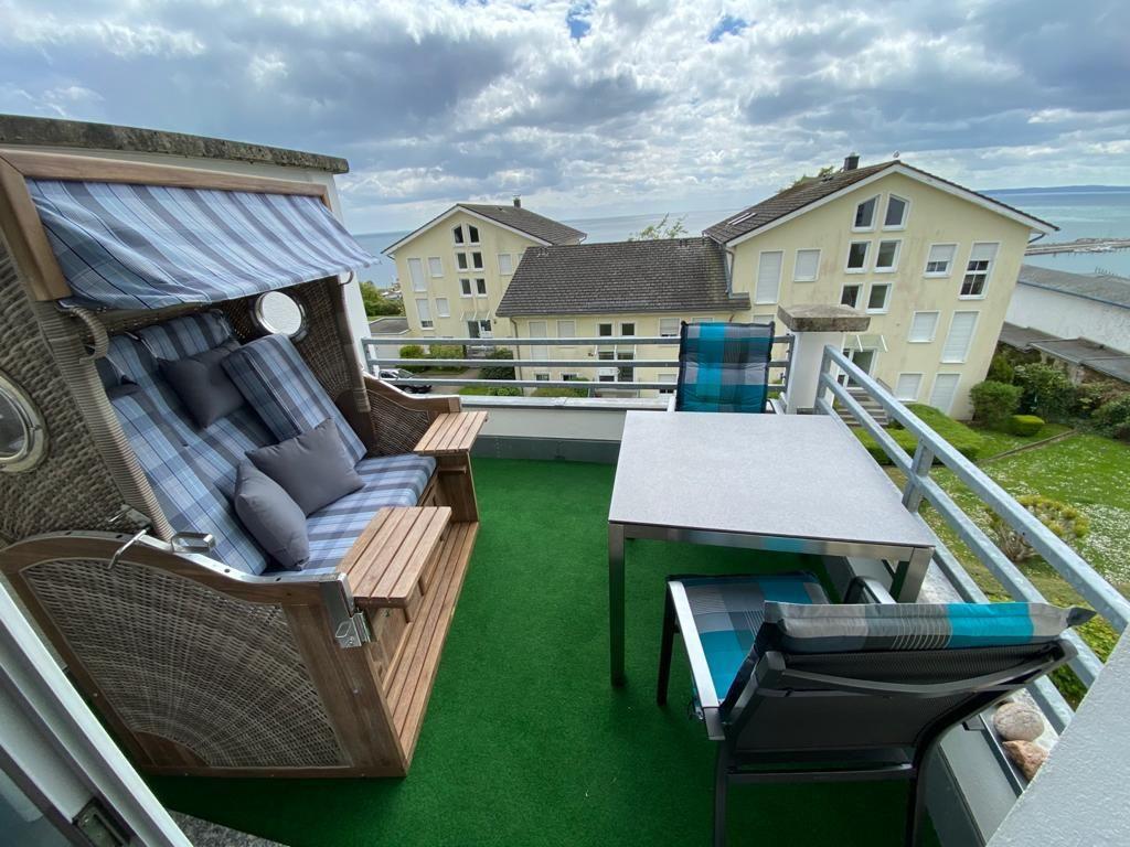 Penthaus-Wohnung mit Balkon, Strandkorb und Meerblick