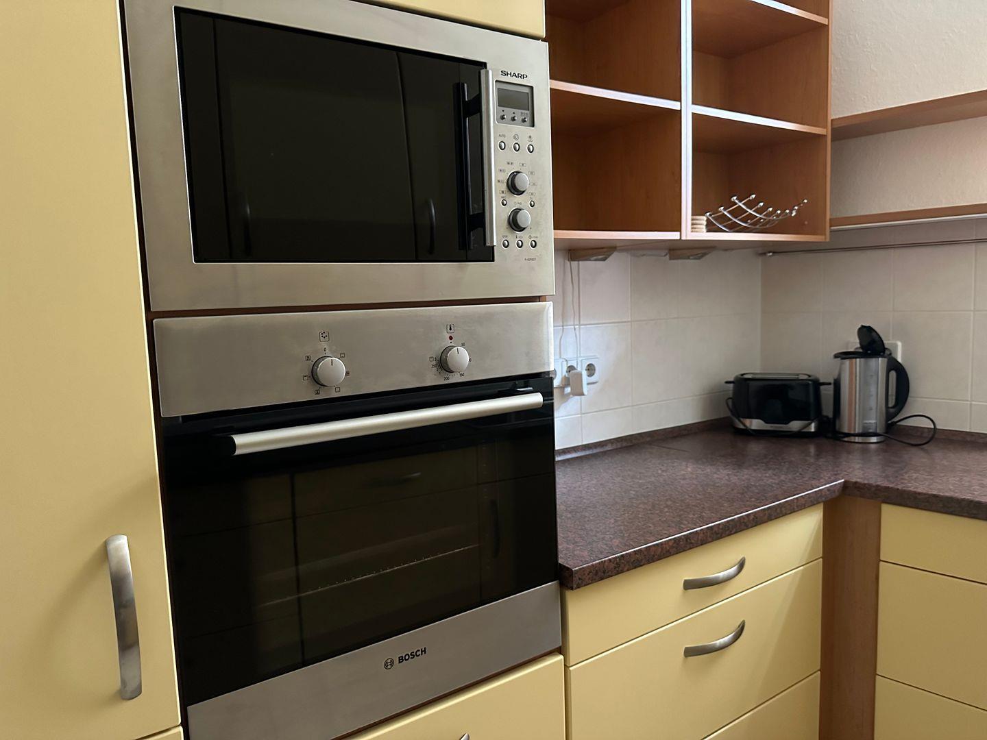 Sie besteht aus einem Wohnzimmer mit einem Esstische und gemütlichen Sofabereich, einem Schlafzimmer mit Boxspringbett, einer separaten voll ausgestatteten Küche sowie ein Badezimmer mit Dusche, Toilette, Waschmaschine und Waschbecken. Die Wohnung verfügt außerdem über einen PKW-Aussenstellplatz, der sich etwa 50 m entfernt von der Wohung befindet.
