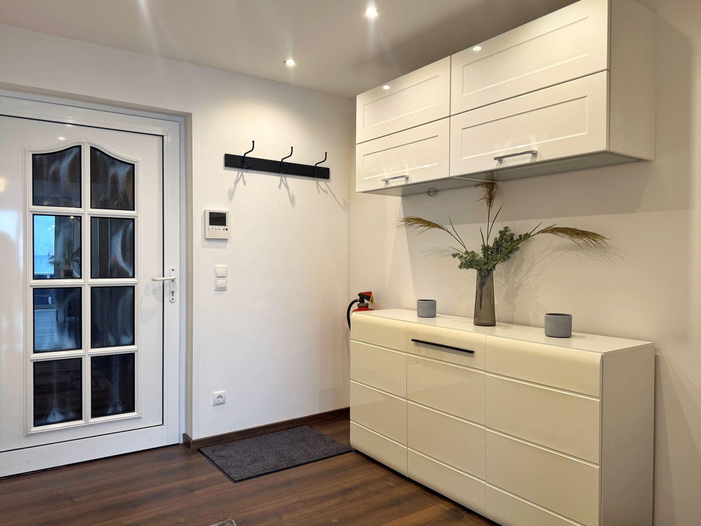 Die Unterkunft erstreckt sich über 2 Etagen und überzeugt mit zwei einladenden Schlafzimmern, die eine entspannende Nachtruhe garantieren. Der hochwertige Laminatboden sorgt für eine angenehme Atmosphäre. Das moderne, helle Badezimmer ist mit einer bodengleichen Dusche und einer Badewanne ausgestattet.