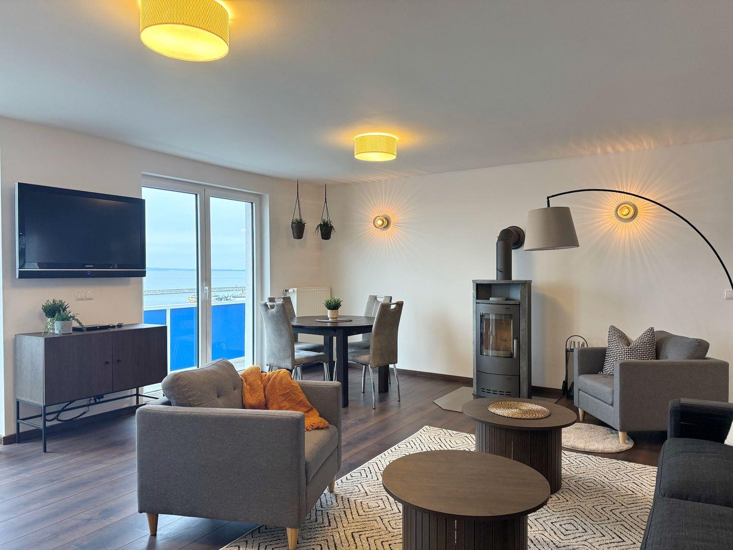 Meerblickappartement mit Kamin