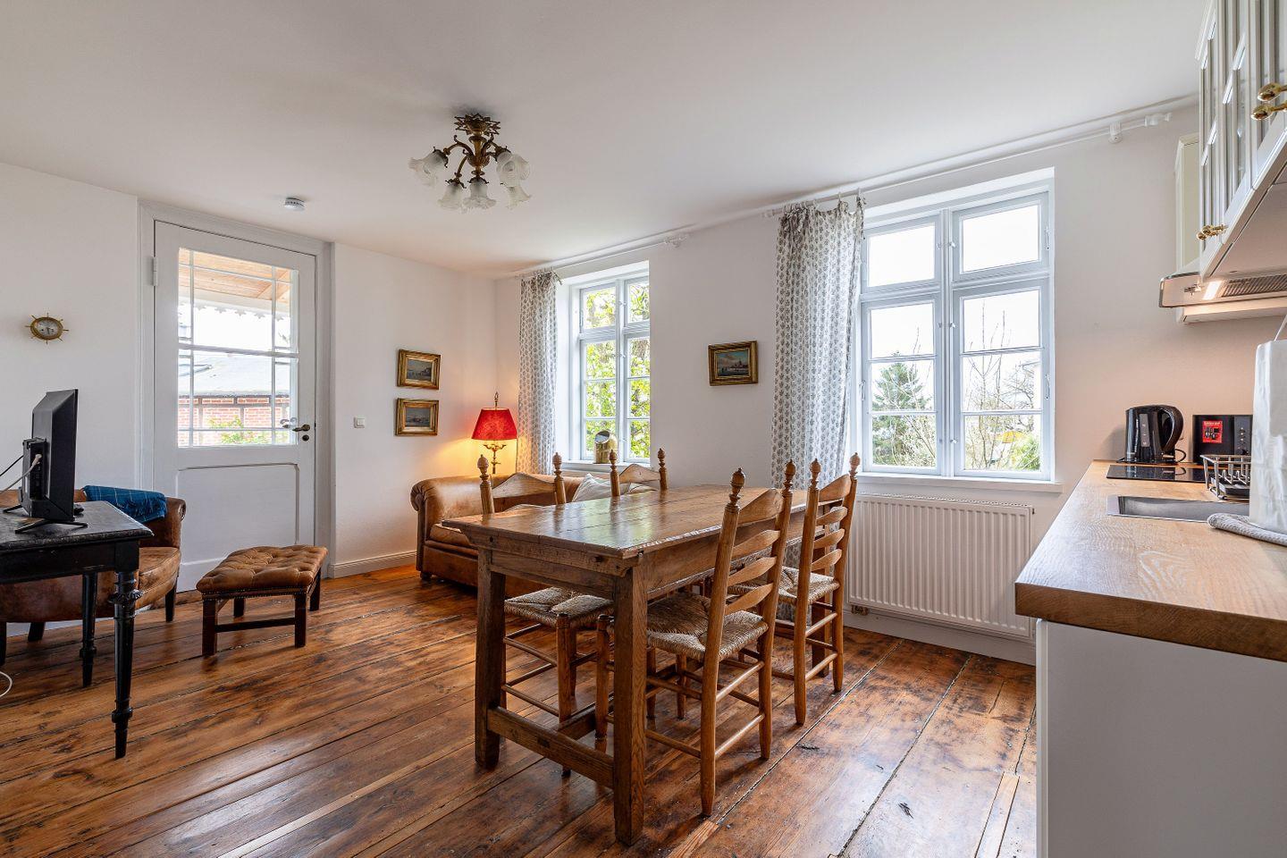 Die denkmalgeschützte Fassade erzählt Geschichten vergangener Zeiten, während sich im Inneren behaglicher Komfort harmonisch mit dem urigen Charakter alter Holzbalken, verwinkelter Räume und liebevoll erhaltener Details verbindet. Hier erleben Sie das wahre Lebensgefühl der Insel – authentisch, lebendig und herzlich.