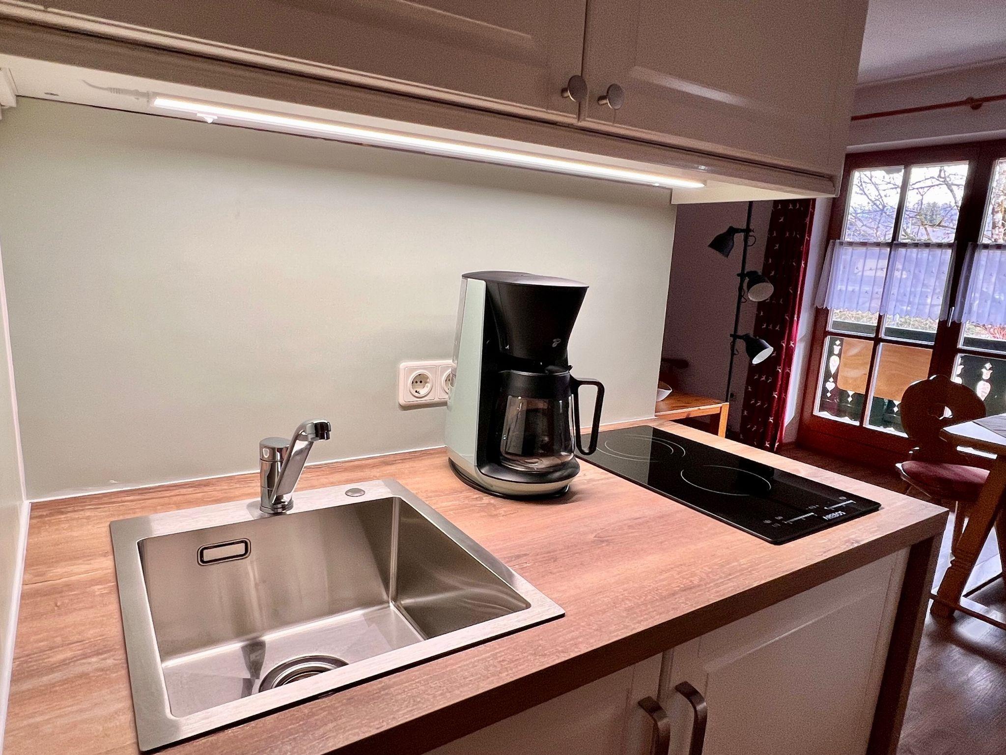 Die kleine Küchenzeile ist gut ausgestattet und ermöglicht eine unkomplizierte Selbstversorgung.