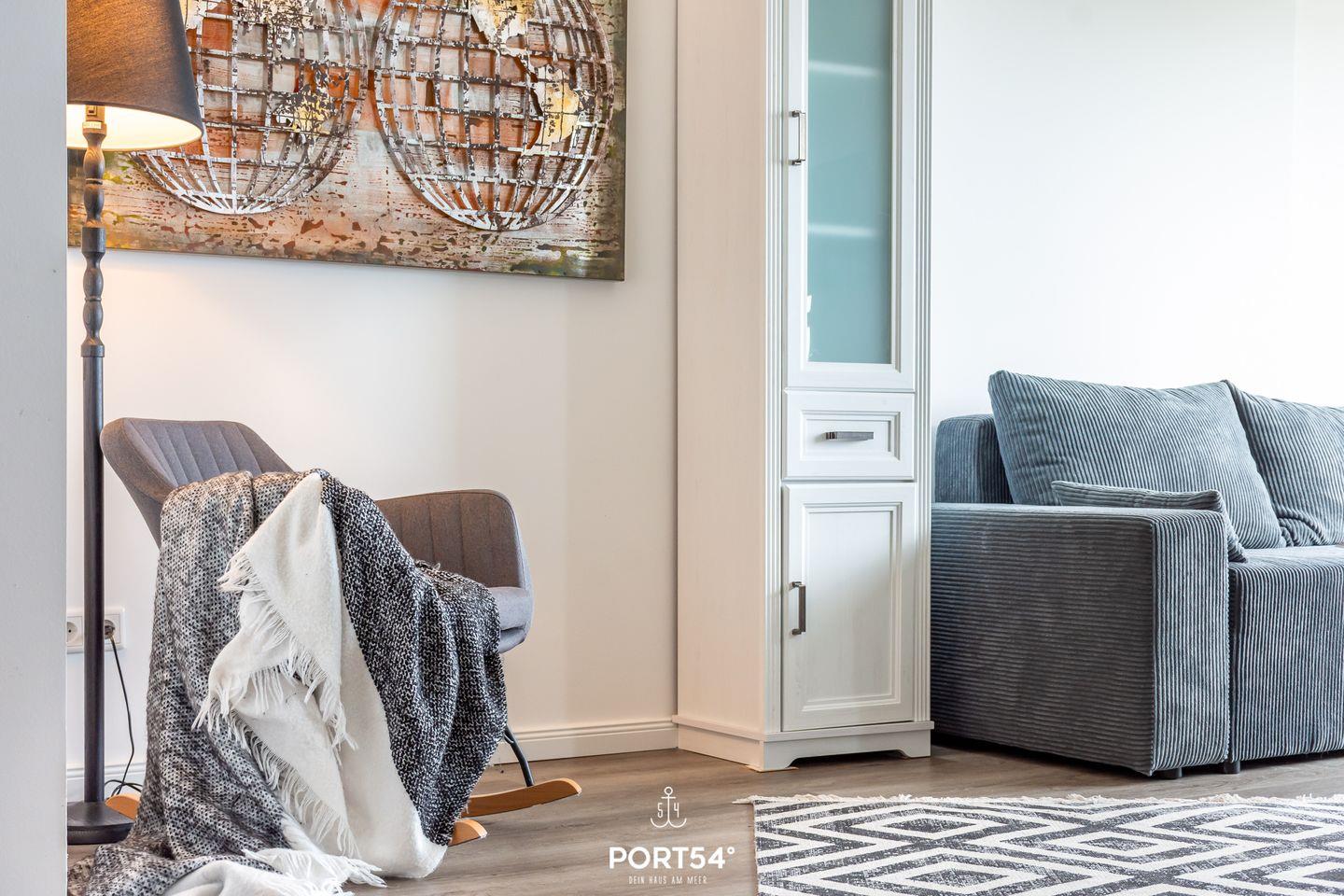 Zur Ausstattung gehört ein eigener Strandkorb am Strand (saisonabhängig) sowie ein eigener PKW-Stellplatz (Nr. 32), damit du dein Fahrzeug sicher abstellen kannst. Außerdem steht dir eine Waschmaschine in der Wohnung zur Verfügung.