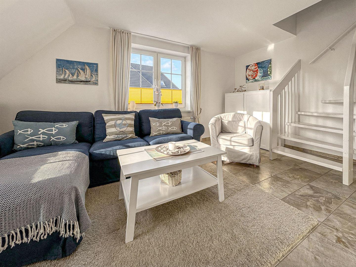 Die Wohnung erstreckt sich über zwei Etagen und besticht durch eine durchdachte Raumaufteilung. Im ersten Stock erwartet Sie ein helles, einladendes Wohnzimmer mit einer komfortablen Sofaecke, einem Essbereich und einem großen, überdachten Balkon. Hier können Sie bei einem Glas Wein entspannen und den Blick ins Grüne genießen. Die offene Küche ist mit modernen Geräten wie einem Kühlschrank, einem Geschirrspüler, einer Espressomaschine und einem 4-Platten-Herd ausgestattet, sodass Sie auch im Urlaub köstliche Gerichte zaubern können. Die beiden gemütlichen Schlafzimmer im 2.OG laden nach einem erlebnisreichen Tag zum Ausruhen ein und sind ideal, um neue Energie zu tanken.
