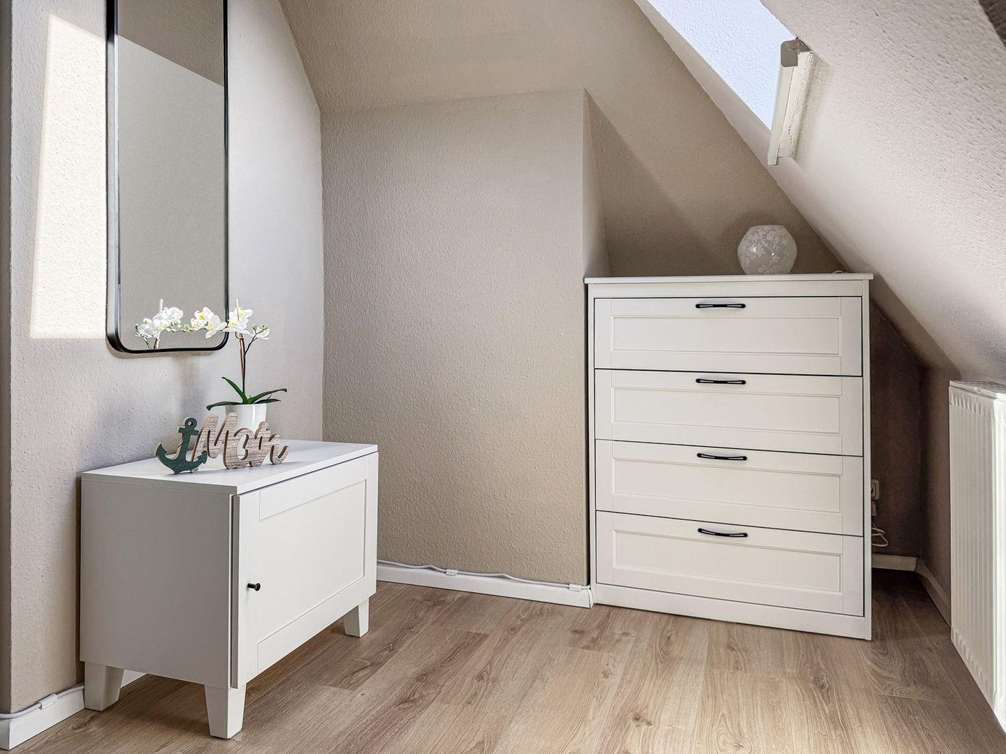 Die Ferienwohnung verfügt über ein modernes Badezimmer mit bodengleicher Dusche sowie über alle Annehmlichkeiten, die Sie von einem erstklassigen Urlaubsort erwarten. Zusätzlich dazu genießen Sie den Komfort von kostenlosem WLAN, einem Fernseher mit internationalen Kanälen und einem Radio. Ihre persönlichen Gegenstände lassen sich bequem in der Garderobe und den Kommoden unterbringen.