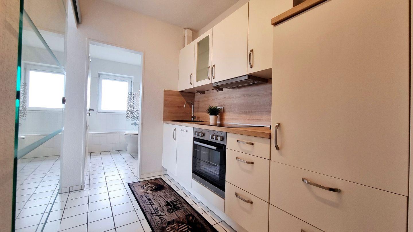 Die Küchenzeile befindet sich im Eingangsbereich und ist großzügig gestaltet, hier lassen sich köstliche Gerichte zusammen zubereiten.