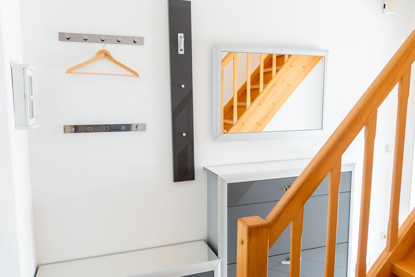 Im Parterre erwartet Sie ein Wohnbereich mit Sofaecke sowie ein separater Essbereich/Esszimmer mit Esstisch – ideal für gemeinsame Mahlzeiten und entspannte Abende. Für behagliche Wärme sorgt eine Zentralheizung, zusätzlich steht ein Kaminofen zur Verfügung. Zur Unterhaltung sind WLAN sowie ein TV vorhanden, ergänzt durch Radio, CD-Spieler und HiFi-Anlage. Eine Garderobe sowie praktische Möbel wie Kommode und weitere Ablagemöglichkeiten runden die Einrichtung ab.