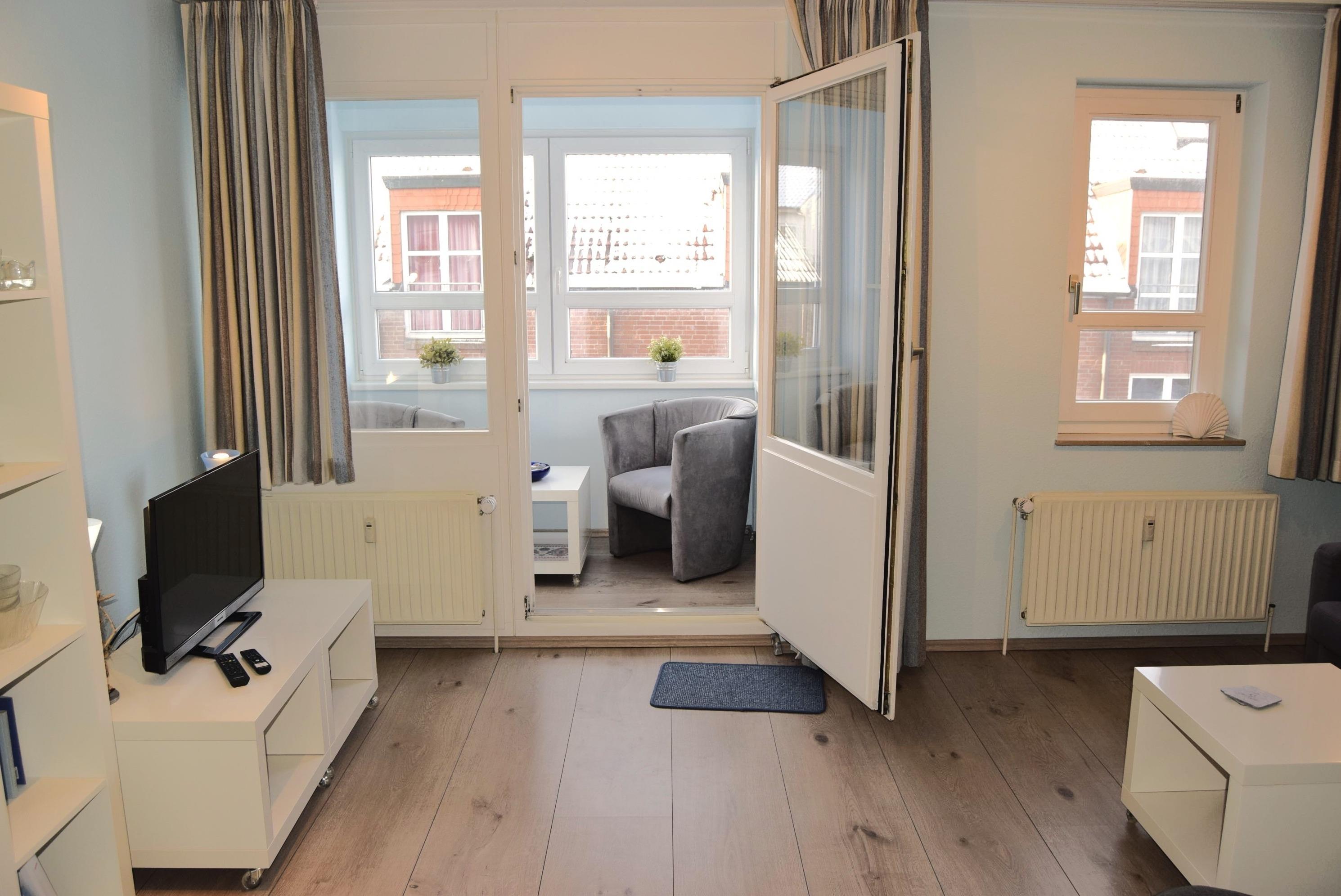 Im Wohnzimmer steht Ihnen ein Smart TV mit WAIPU TV für gemütliche Abende zur Verfügung. Ob Couch oder Relaxsessel - hier findet jeder seinen Lieblingsplatz. Die verglaste Loggia zur Landseite bietet auch jeder Leseratte einen gemütlichen Rückzug.
